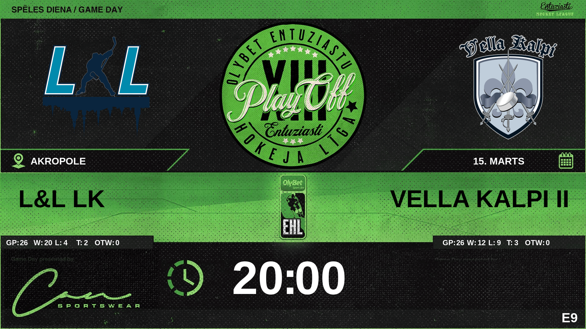 | 00:00 | LLL | GK In | #88 Emīls Lielpēteris |