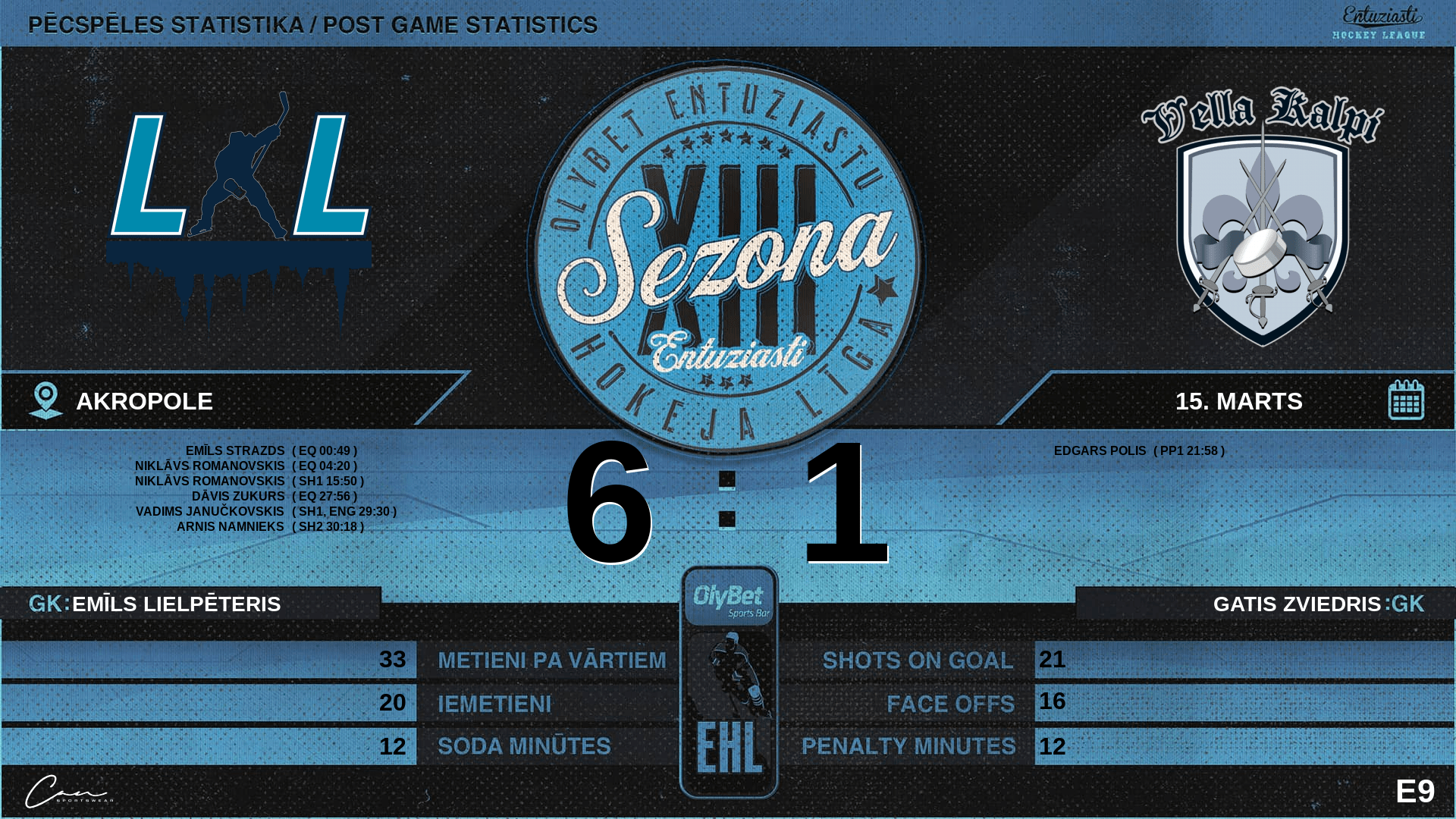 | 36:00 | LLL | GK Out | #88 Emīls Lielpēteris |