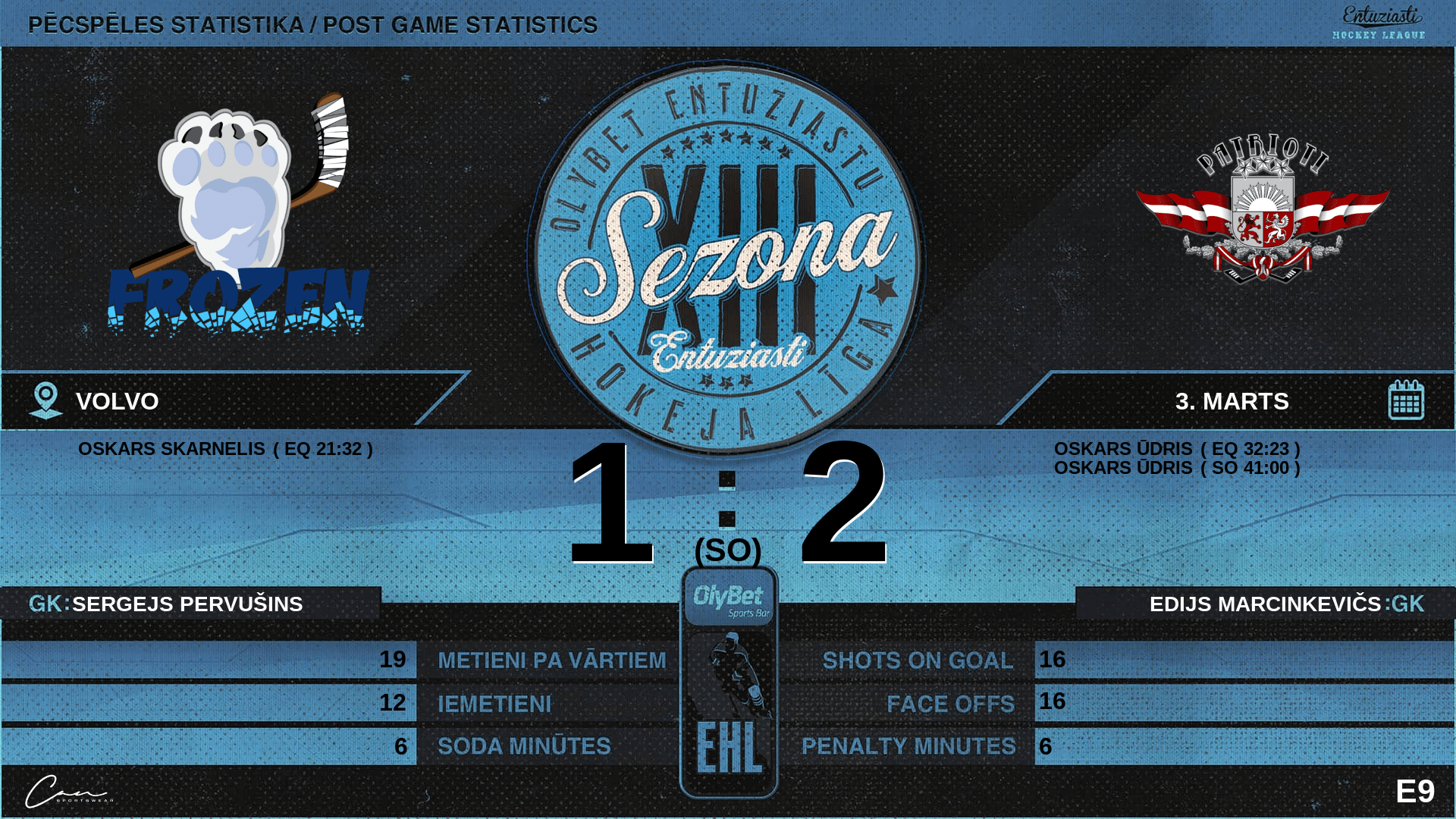 | 41:00 | PT3 | Vārti (SO) | #34 Oskars Ūdris |