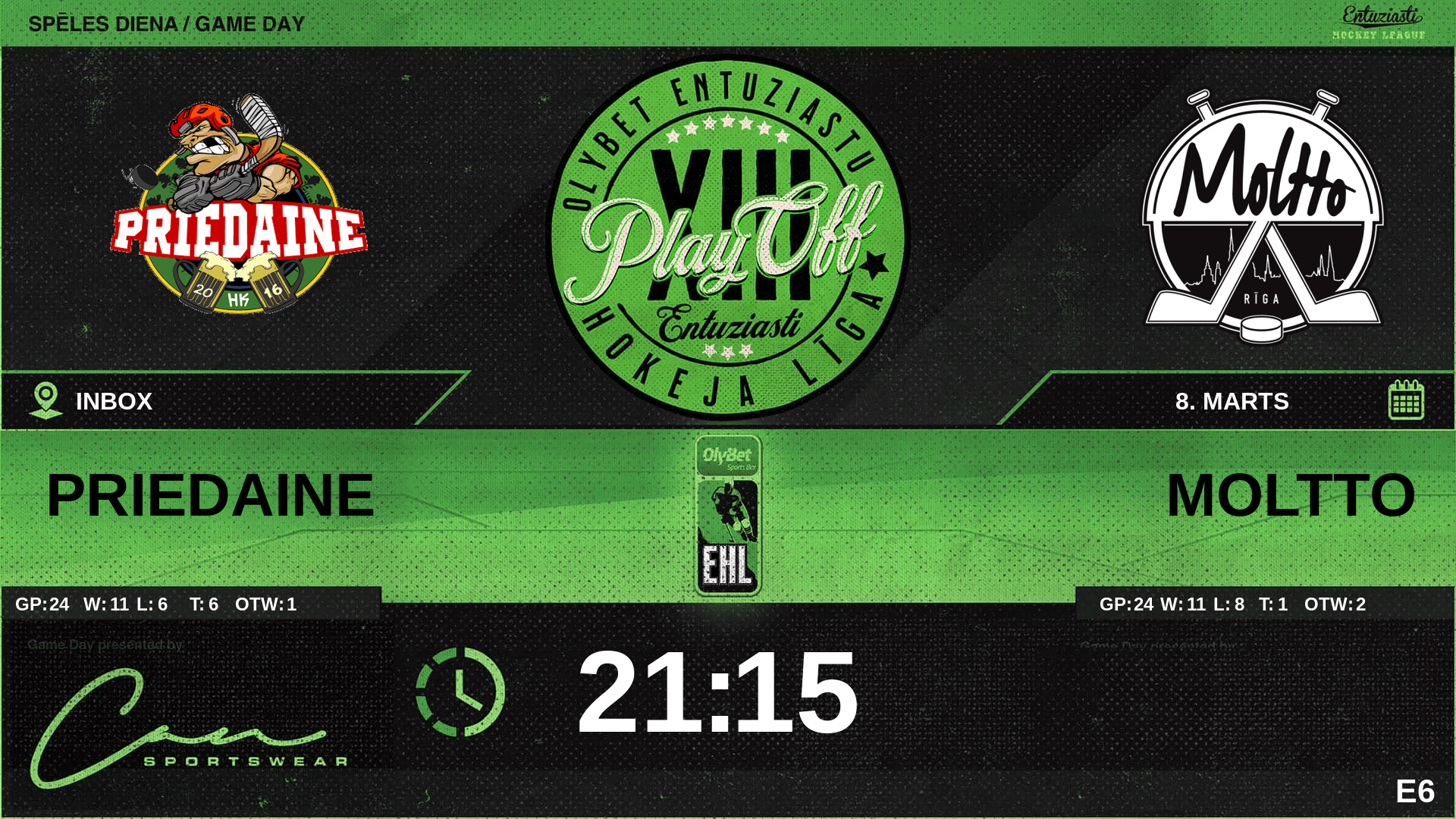 00:00 | PRE | GK In | #1 Viktors Durnovs |
