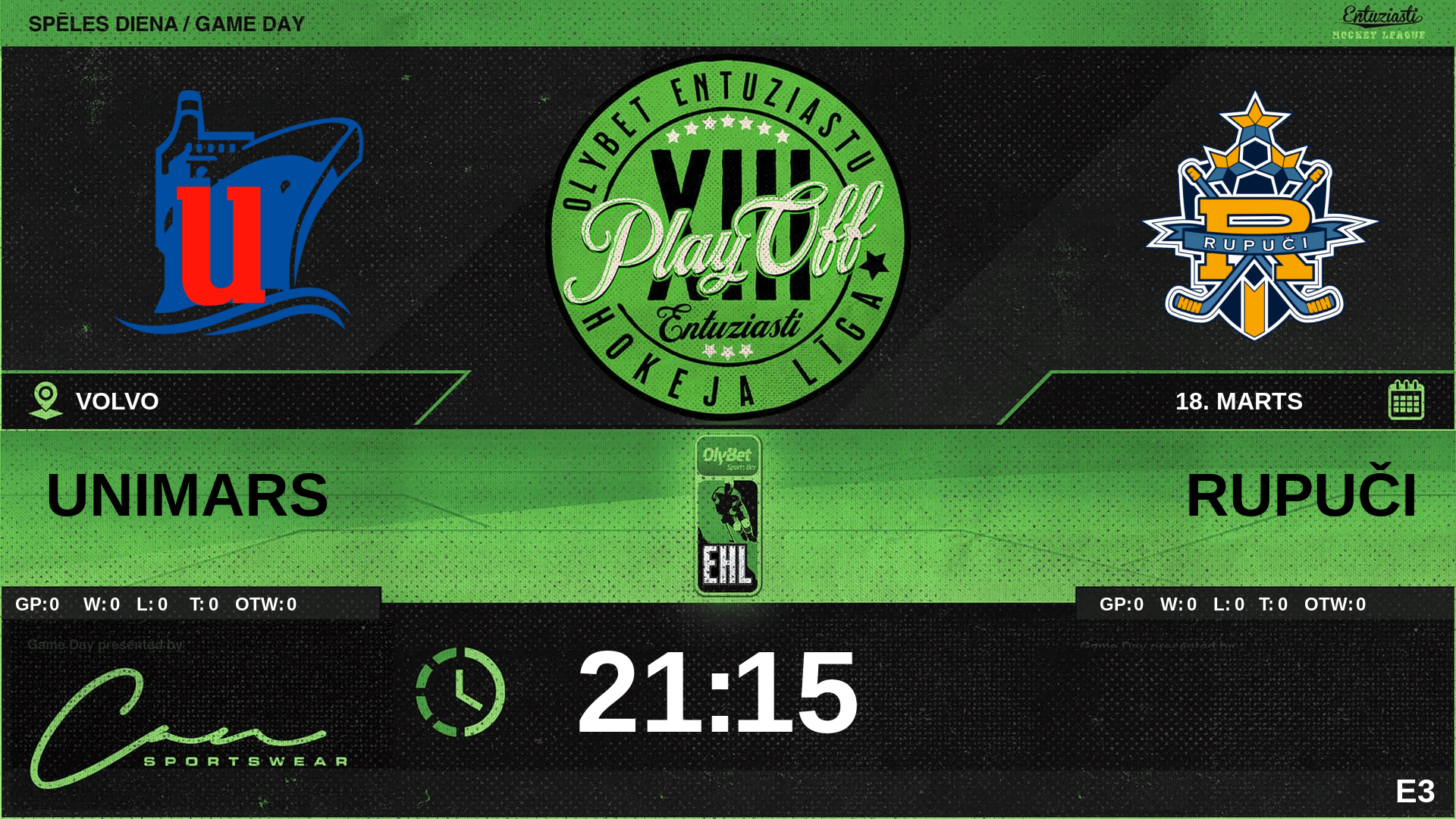 | 17:00 | UNI | Noraidījums | #11 Svens Dinsdorfs - Slashing (2 min) |