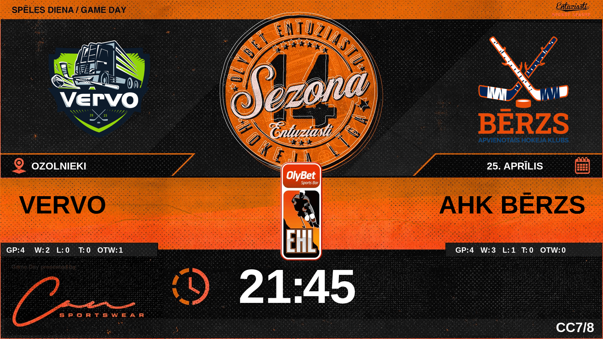 | 00:00 | AHK | GK In | #12 Viesturs Glāzītis |