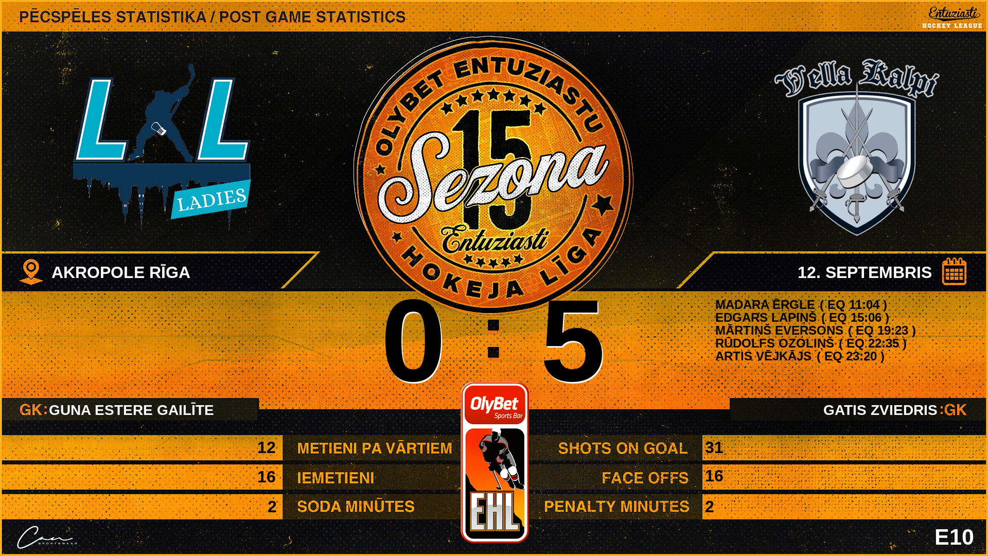 11:04 | VL3 | Vārti (EQ) | #58 Madara Ērgle, piespēles: #57 Rūdolfs Ozoliņš |