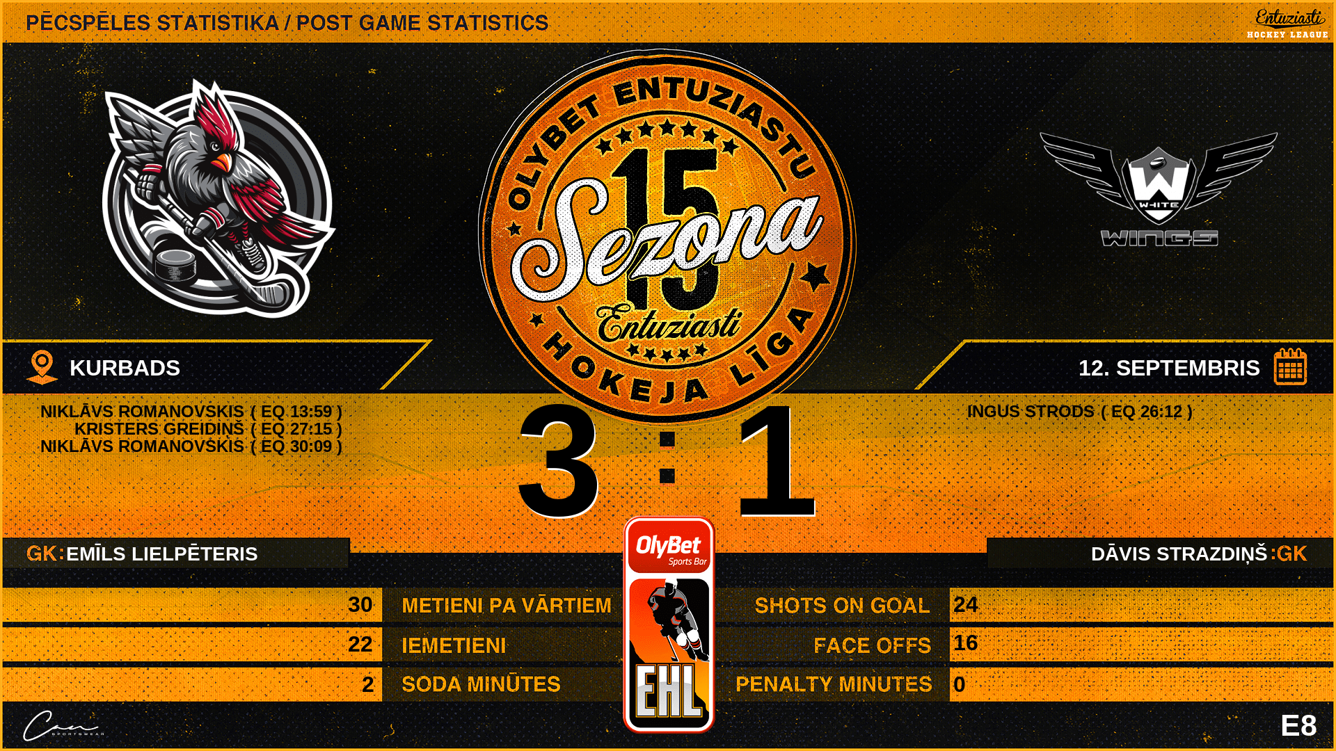 26:12 | WTW | Vārti (EQ) | #4 Ingus Strods, piespēles: #39 Ivars Bārenis |