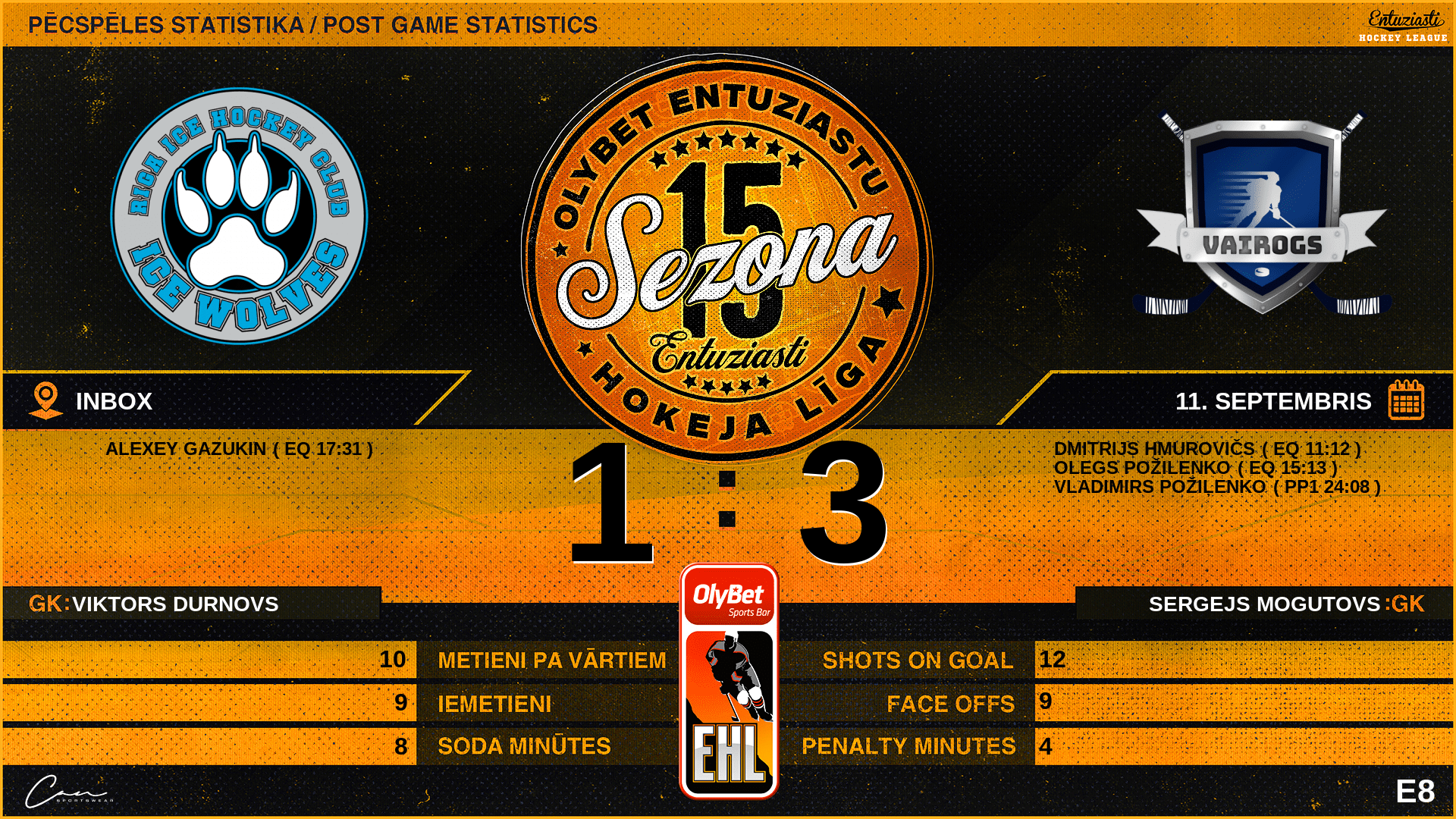 15:13 | VRG | Vārti (EQ) | #17 Olegs Požilenko |