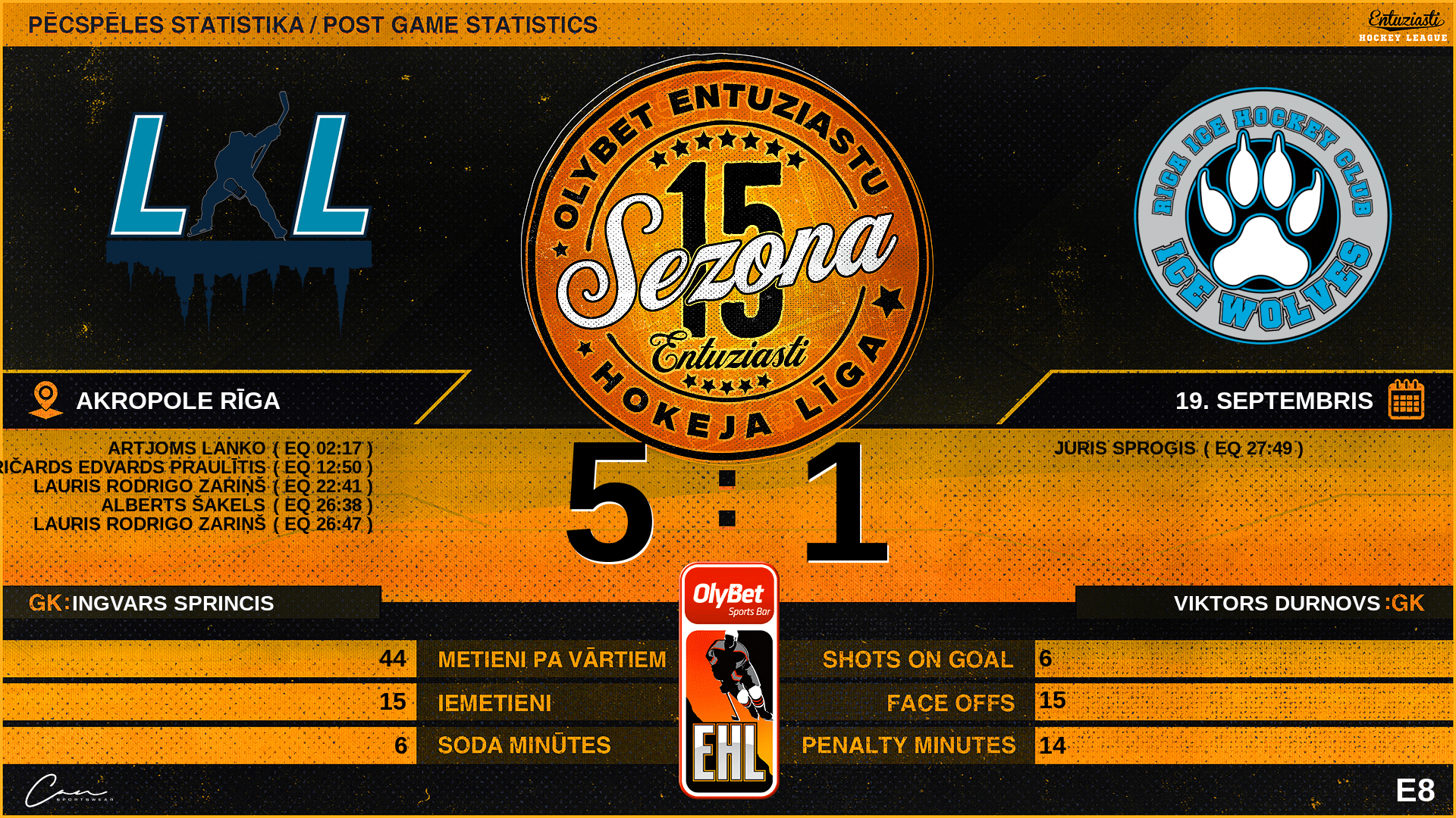 22:41 | LLL | Vārti (EQ) | #97 Lauris Rodrigo Zariņš, piespēles: #67 Alberts Šakels |