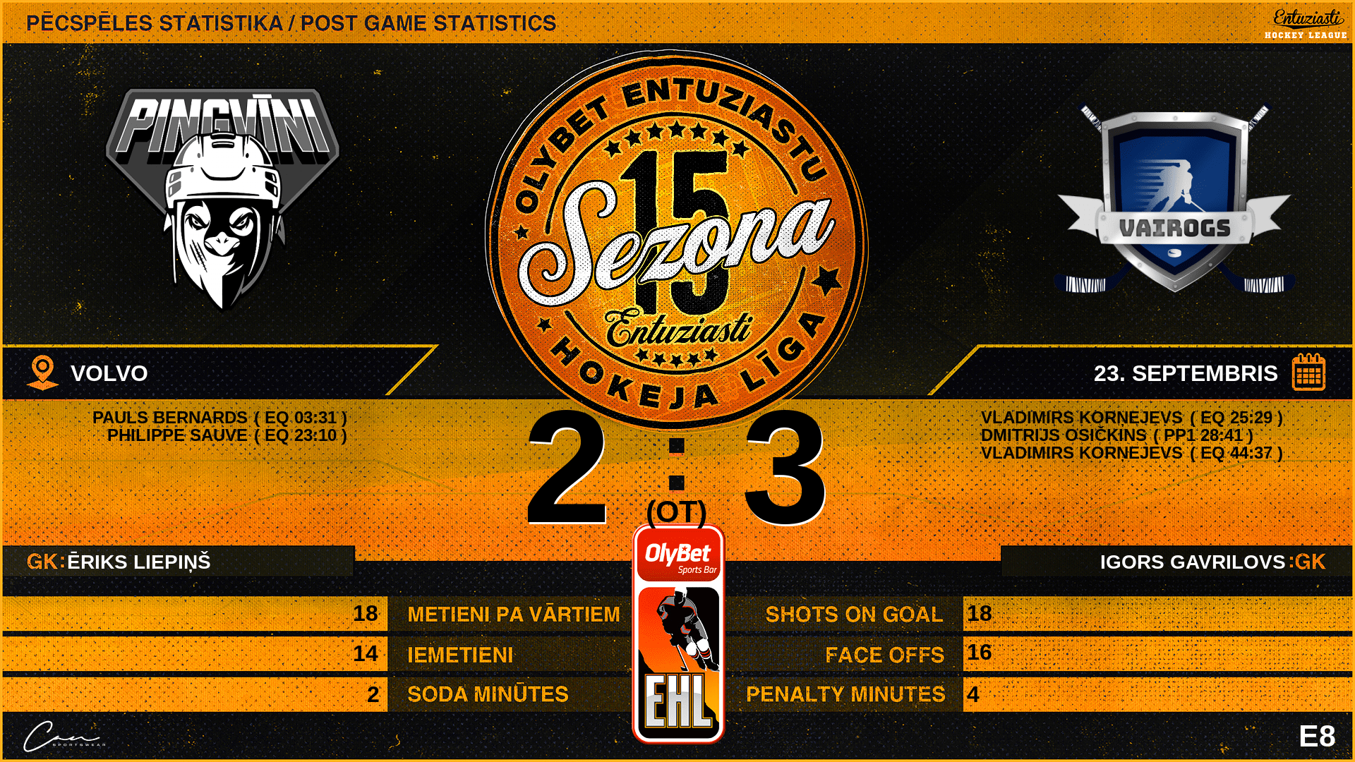 25:29 | VRG | Vārti (EQ) | #66 Vladimirs Korņejevs, piespēles: #77 Dmitrijs Osičkins |