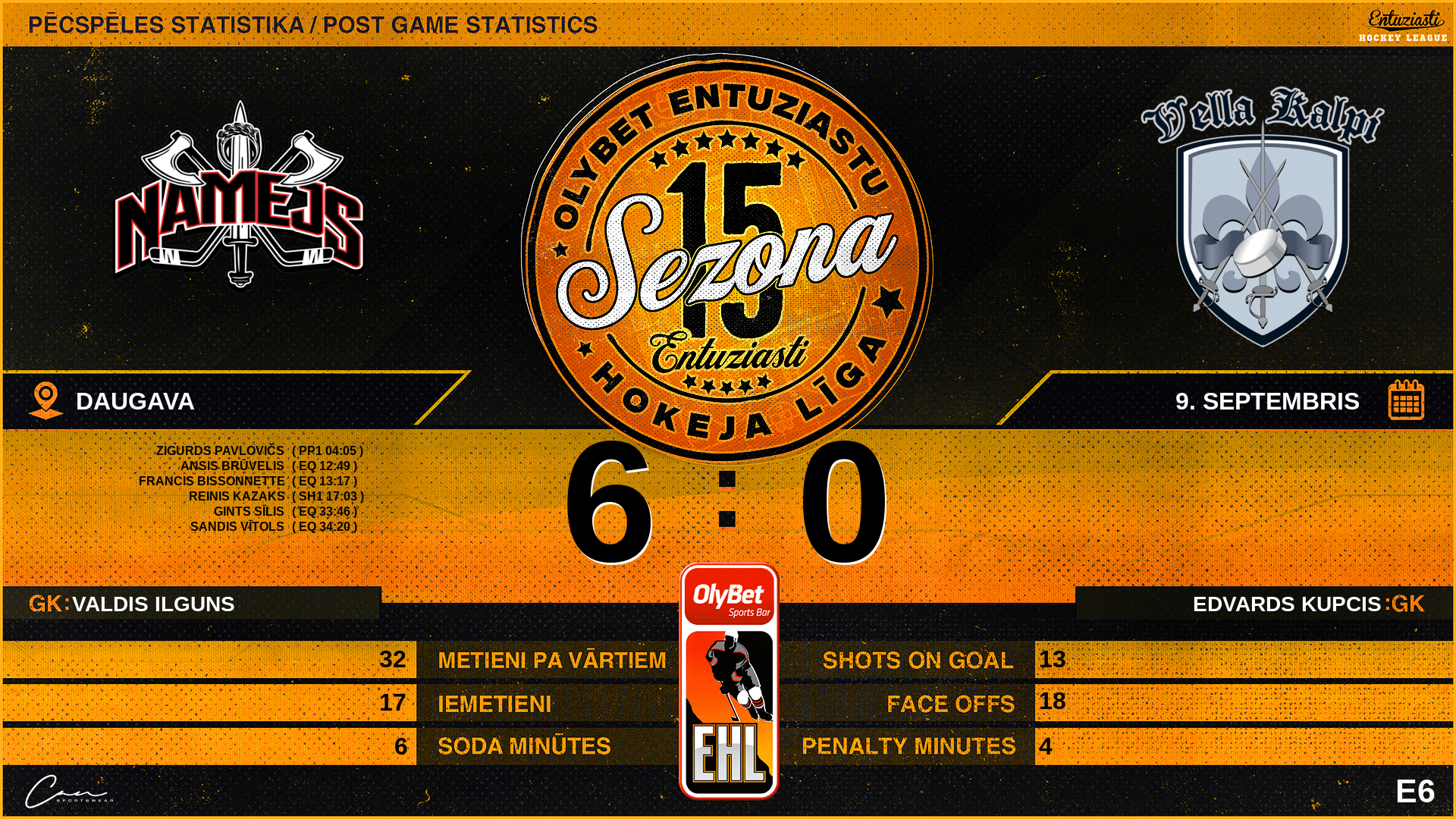 12:49 | NMJ | Vārti (EQ) | #89 Ansis Brūvelis, piespēles: #77 Reinis Kazaks, #8 Sandis Vītols |