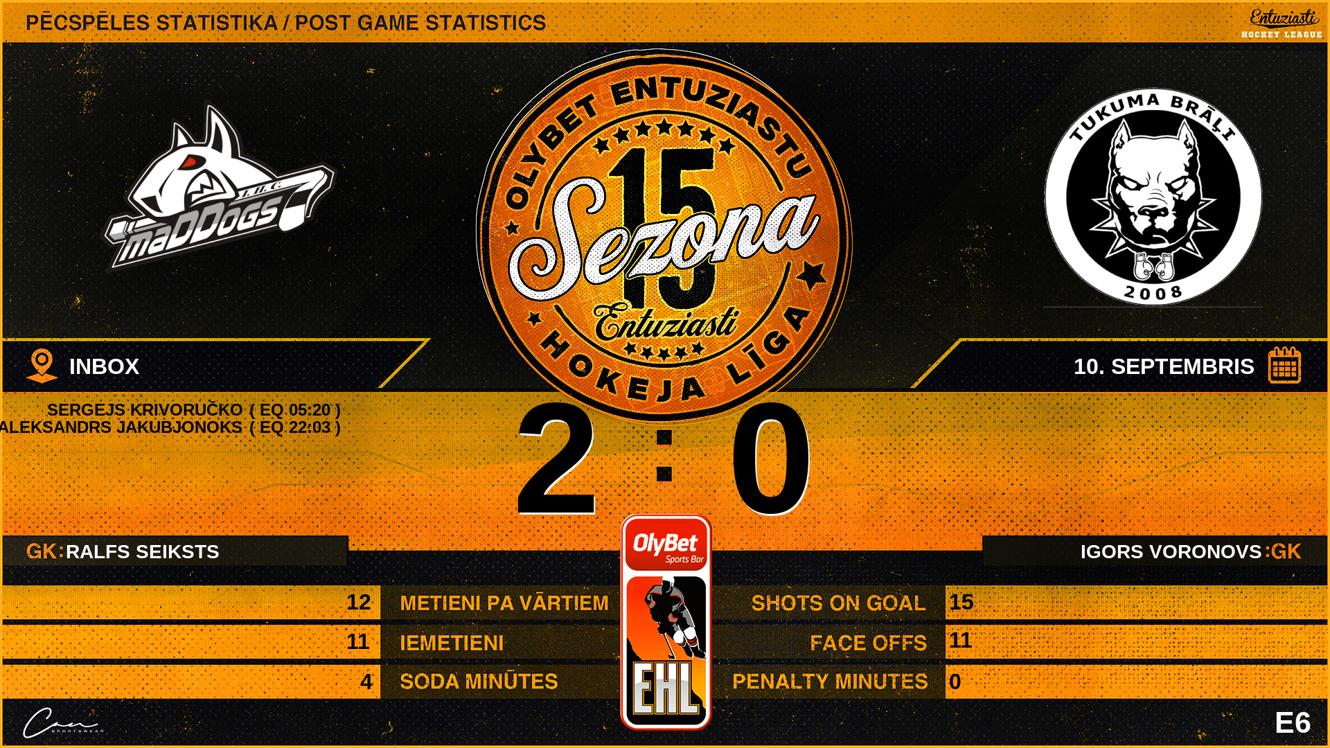 22:03 | MDG | Vārti (EQ) | #79 Aleksandrs Jakubjonoks |