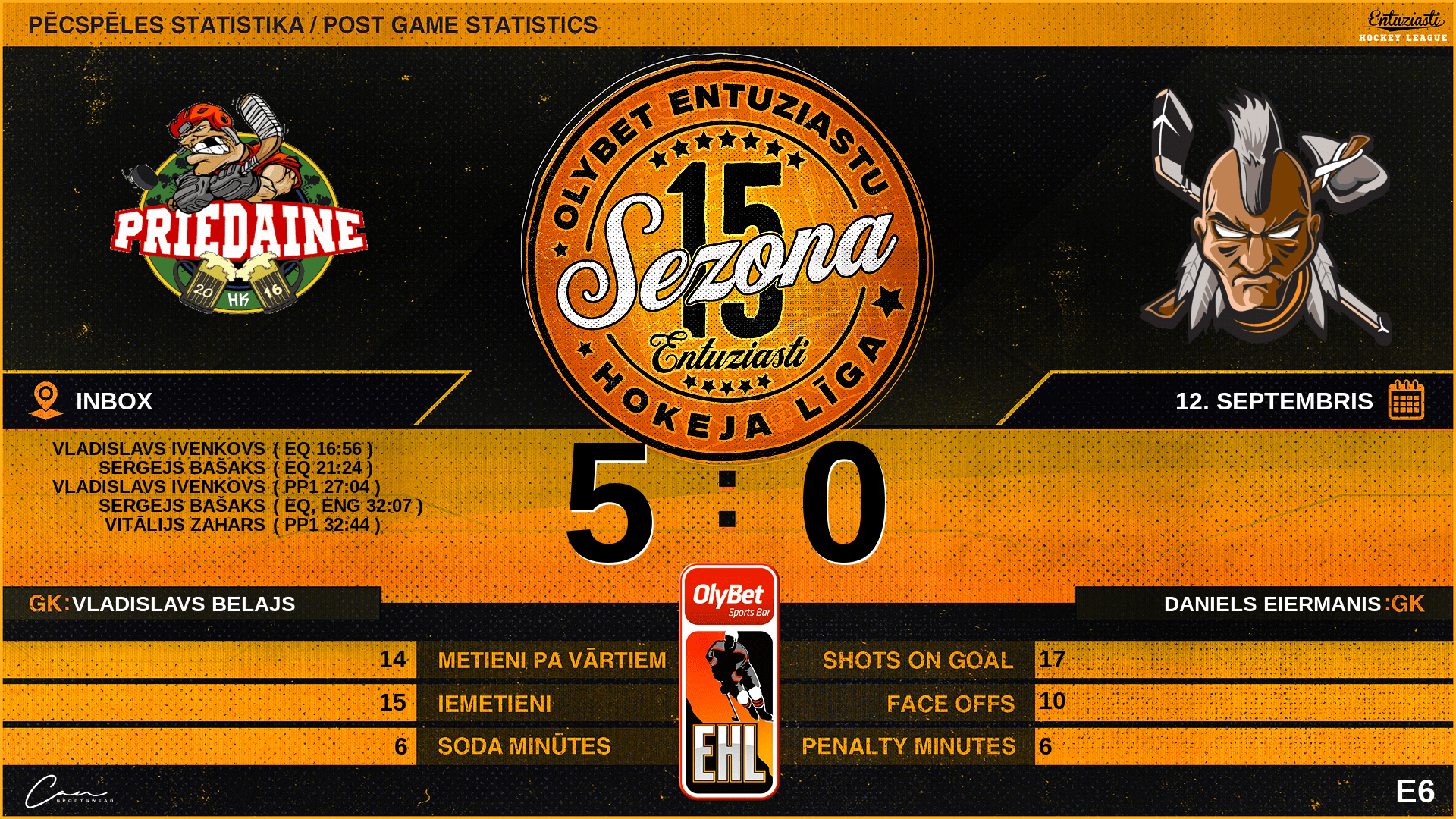 00:00 | PRE | GK In | #1 Vladislavs Belajs |