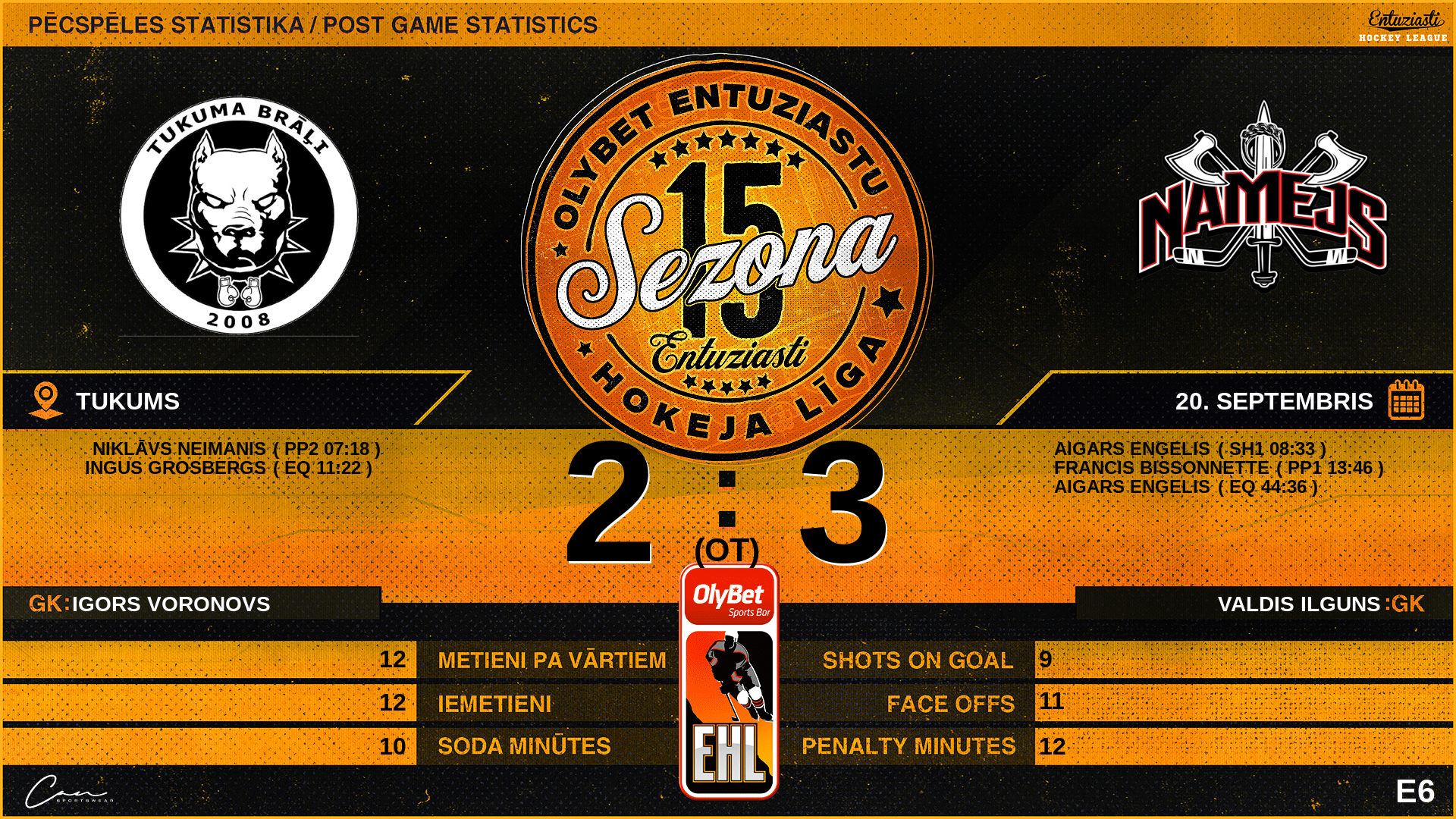 08:33 | NMJ | Vārti (SH1) | #23 Aigars Enģelis, piespēles: #83 Ivars Nolle |