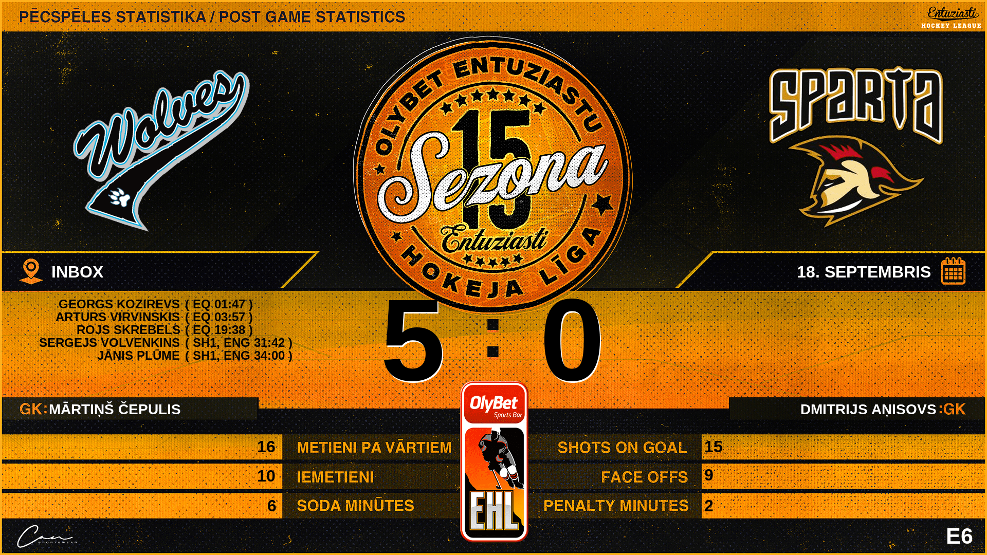 03:57 | WF3 | Vārti (EQ) | #16 Arturs Virvinskis, piespēles: #21 Jānis Plūme, #27 Georgs Kozirevs |
