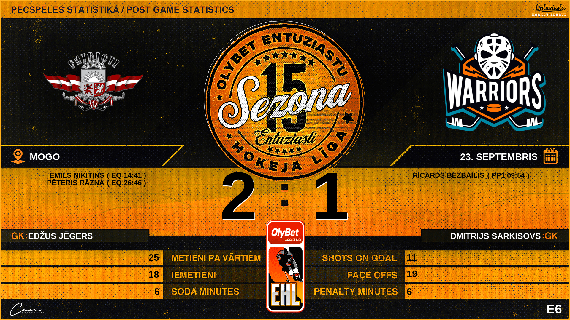 14:41 | PTR | Vārti (EQ) | #33 Emīls Ņikitins, piespēles: #84 Gatis Miglāns |