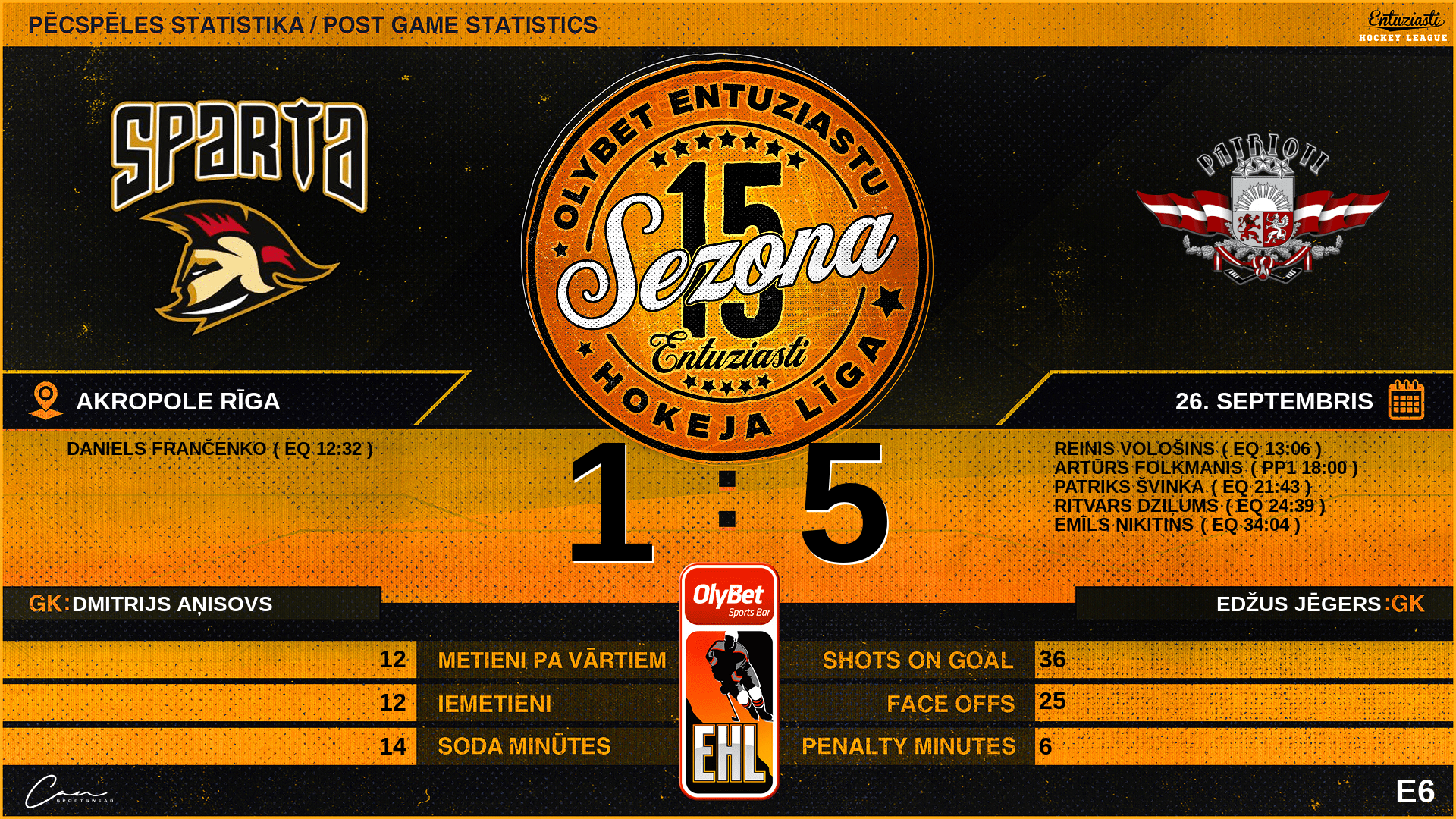36:00 | SP2 | GK Out | #1 Dmitrijs Aņisovs |