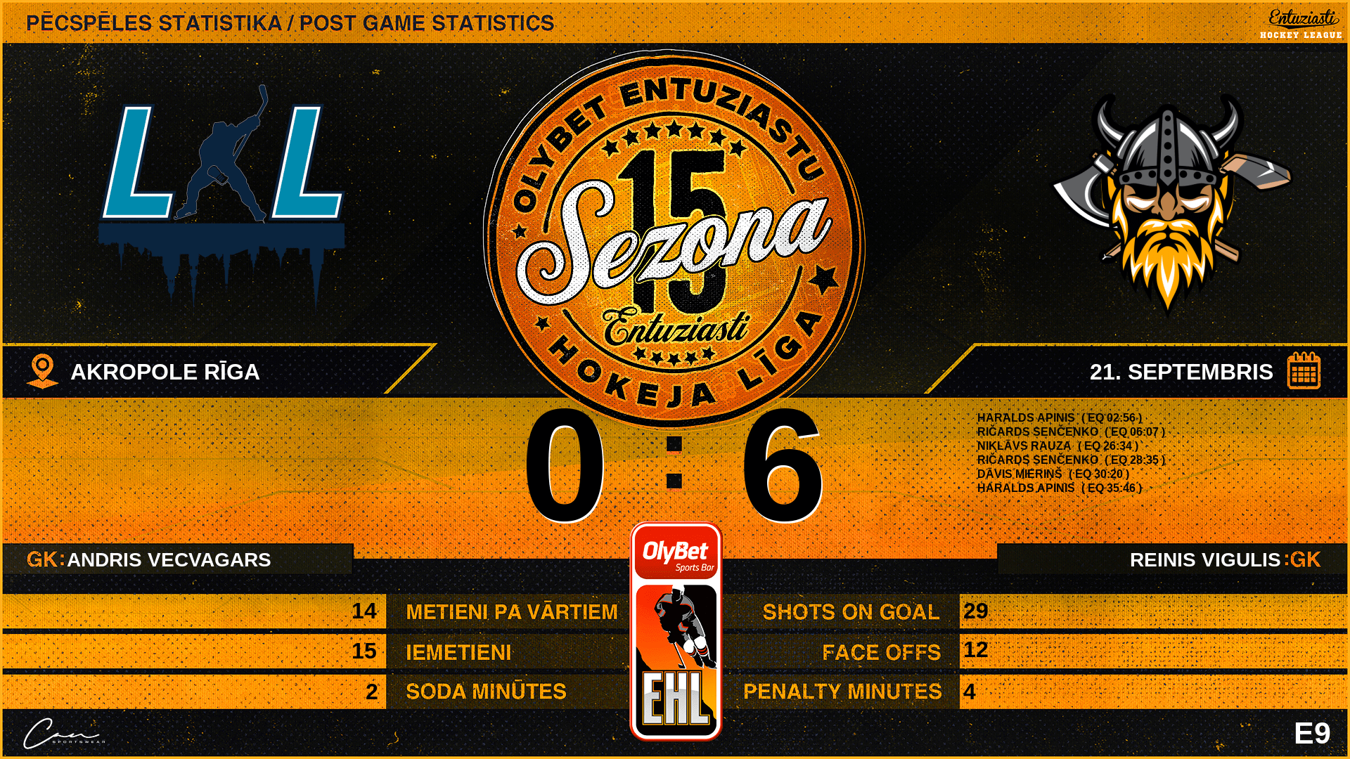 06:07 | VN3 | Vārti (EQ) | #97 Ričards Senčenko, piespēles: #99 Haralds Apinis, #25 Egils Lielbārdis |