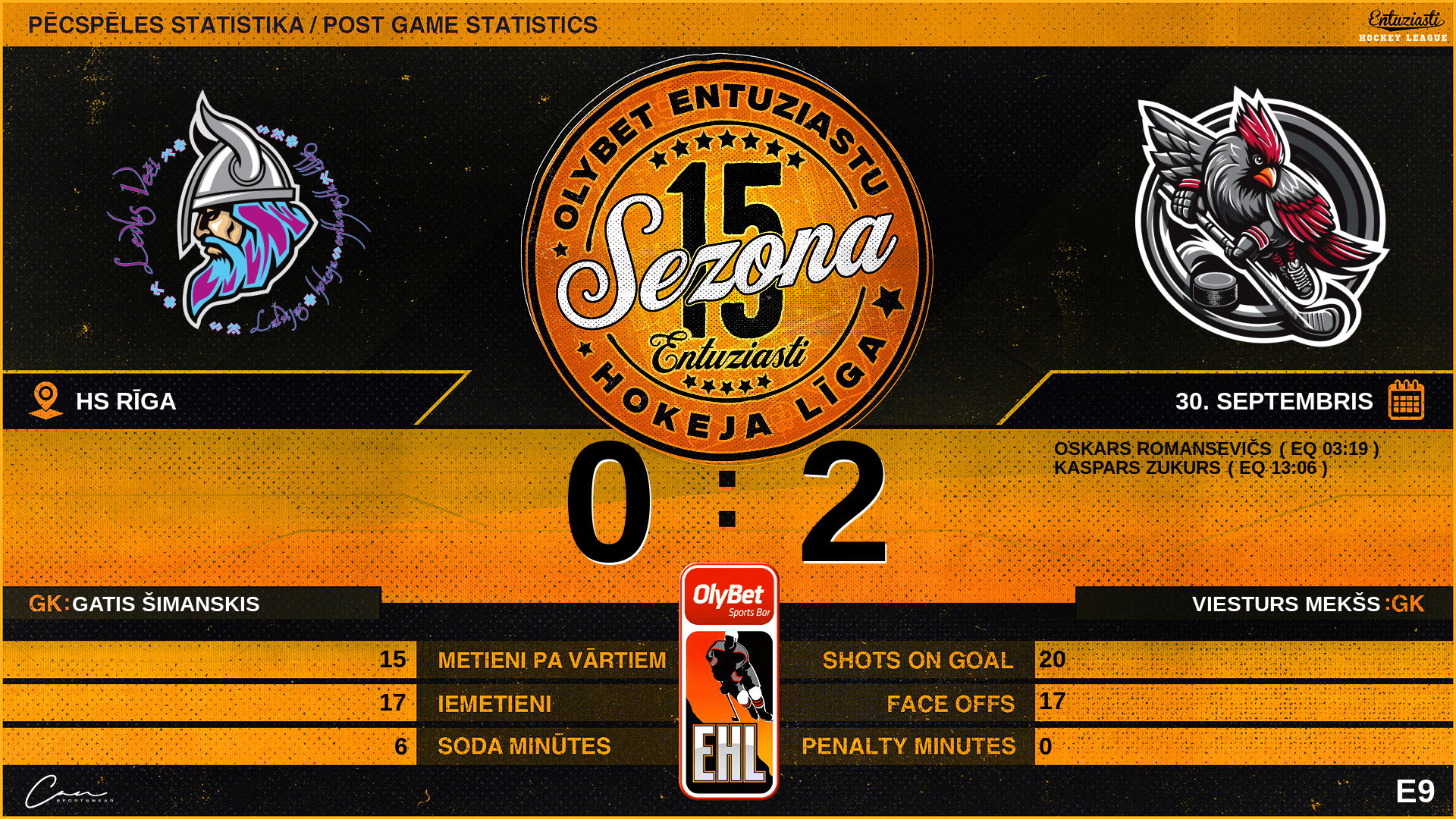 13:06 | PK2 | Vārti (EQ) | #37 Markuss Jānis Švāģeris, piespēles: #78 Oskars Romansevičs, #33 Kaspars Zukurs |