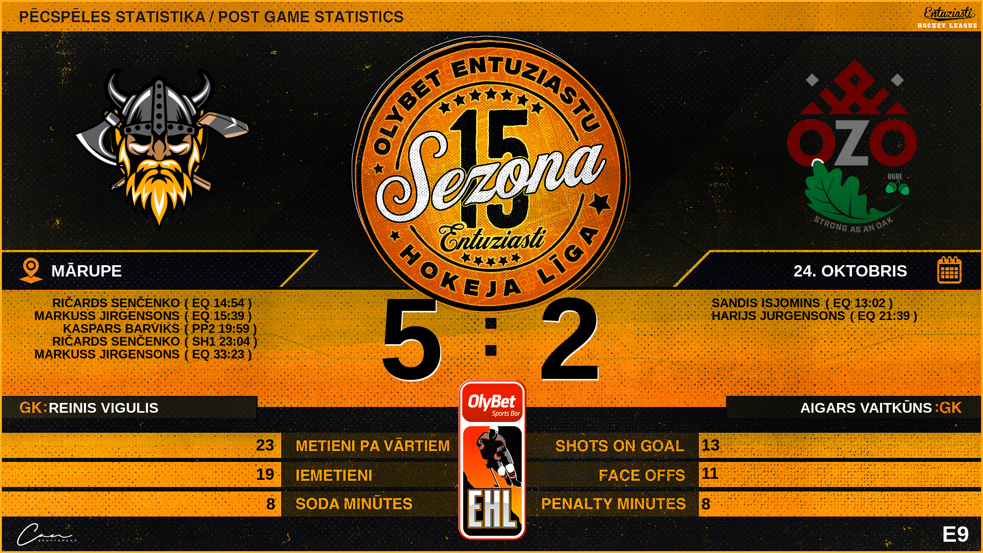 | 21:39 | OZG | Vārti (EQ) | #23 Harijs Jurgensons |