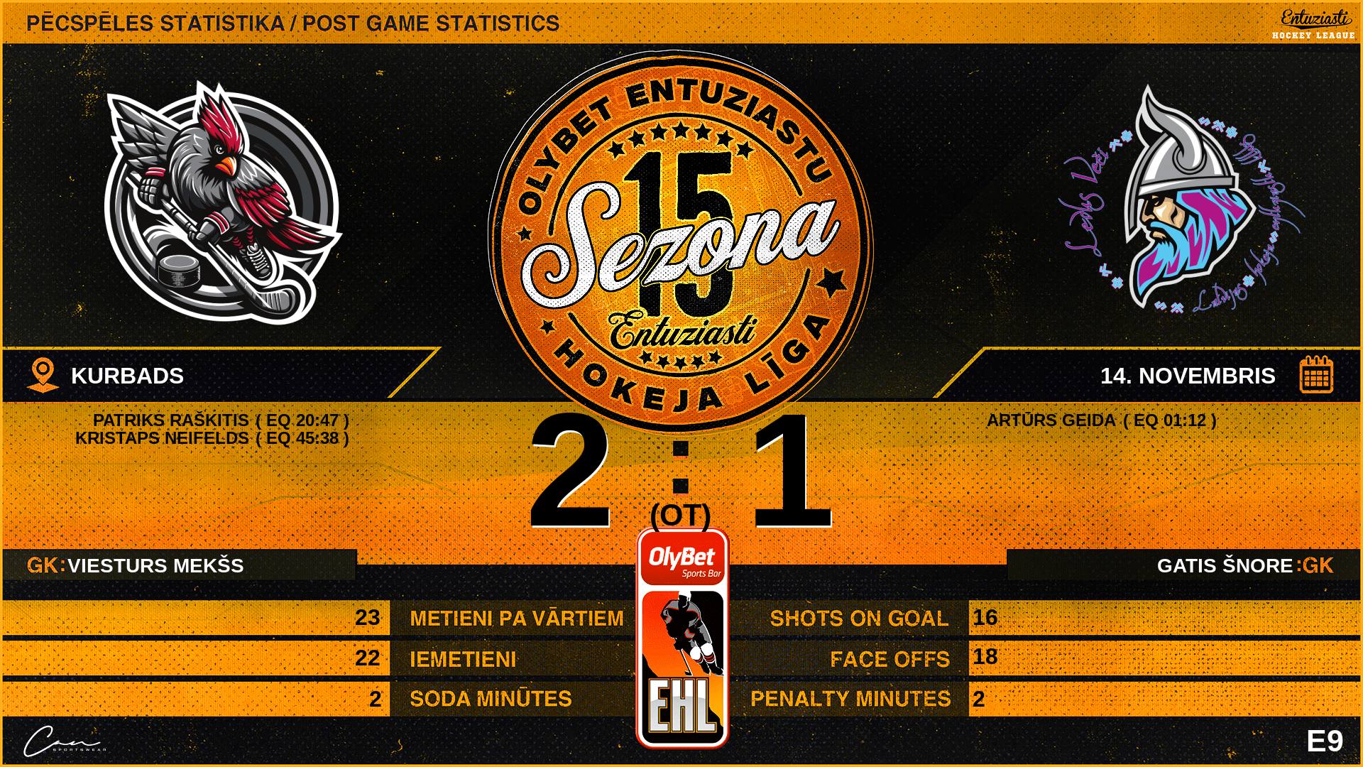 | 00:00 | PK2 | GK In | #29 Viesturs Mekšs |
