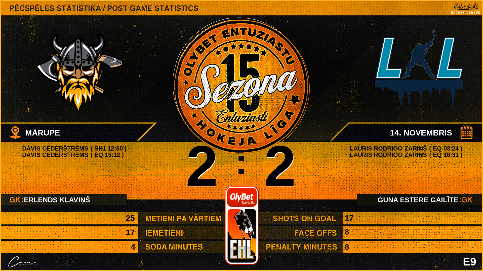 | 03:24 | LLS | Vārti (EQ) | #97 Lauris Rodrigo Zariņš |