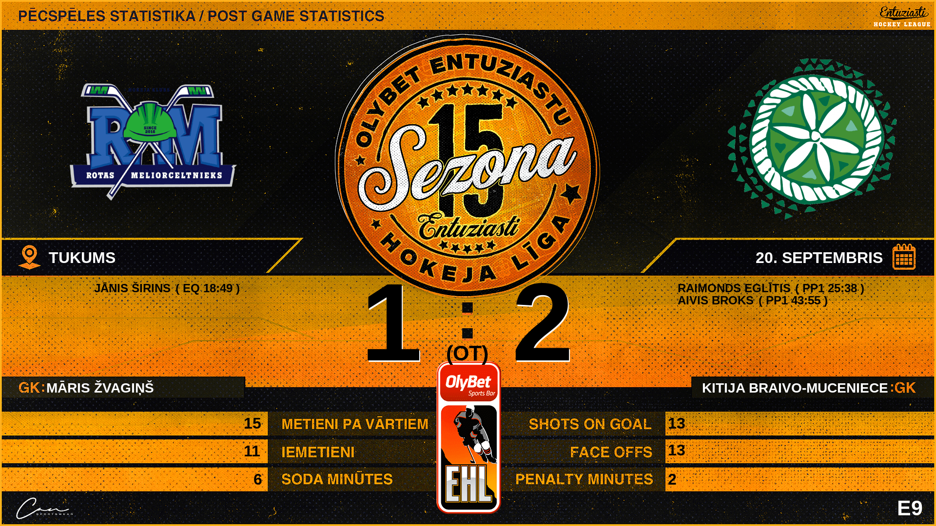 25:38 | PC2 | Vārti (PP1) | #47 Raimonds Eglītis, piespēles: #24 Rinalds Biezais |