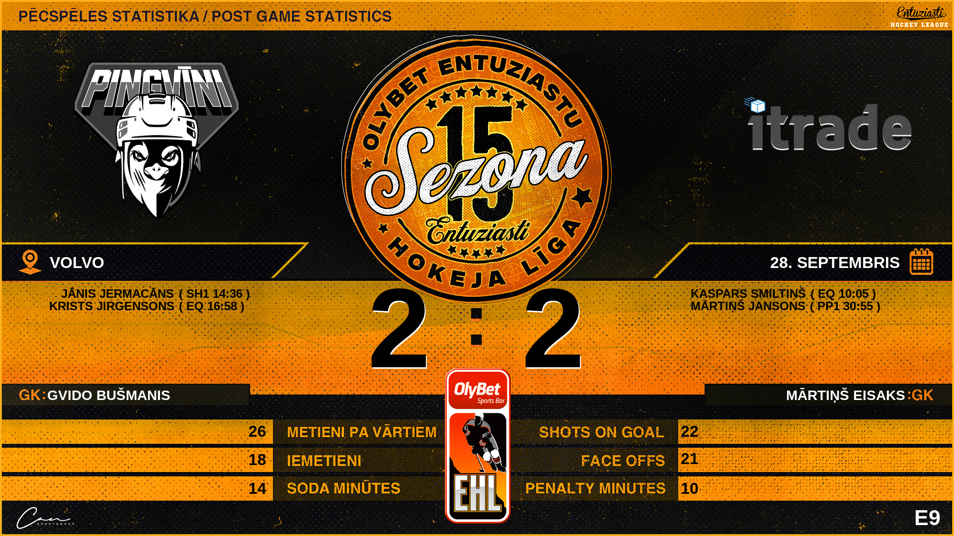 10:05 | ITR | Vārti (EQ) | #85 Kaspars Smiltiņš, piespēles: #71 Raitis Teters Teterovskis |