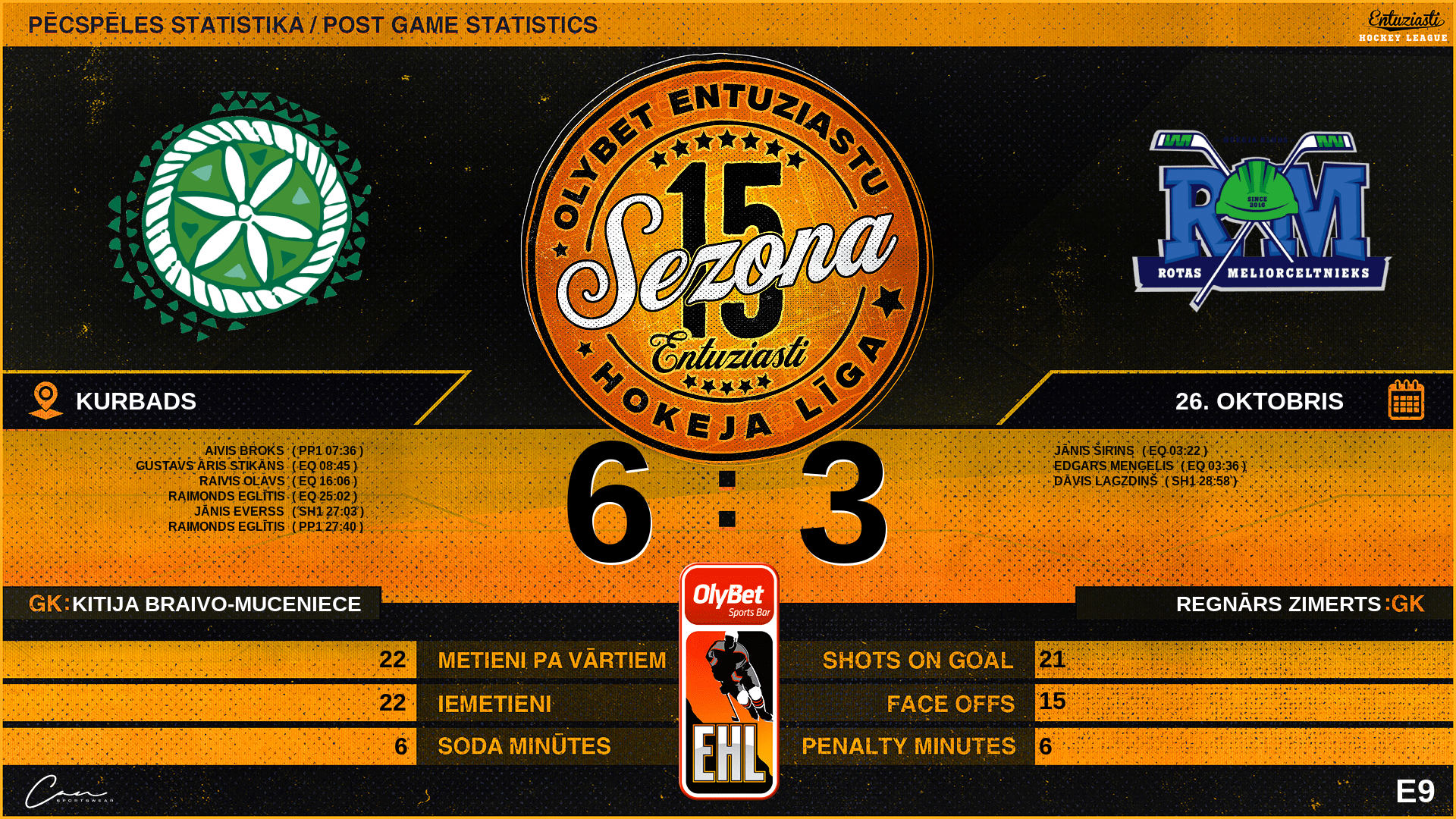 | 03:36 | RT3 | Vārti (EQ) | #68 Edgars Meņģelis, piespēles: #41 Edgars Stančiks |