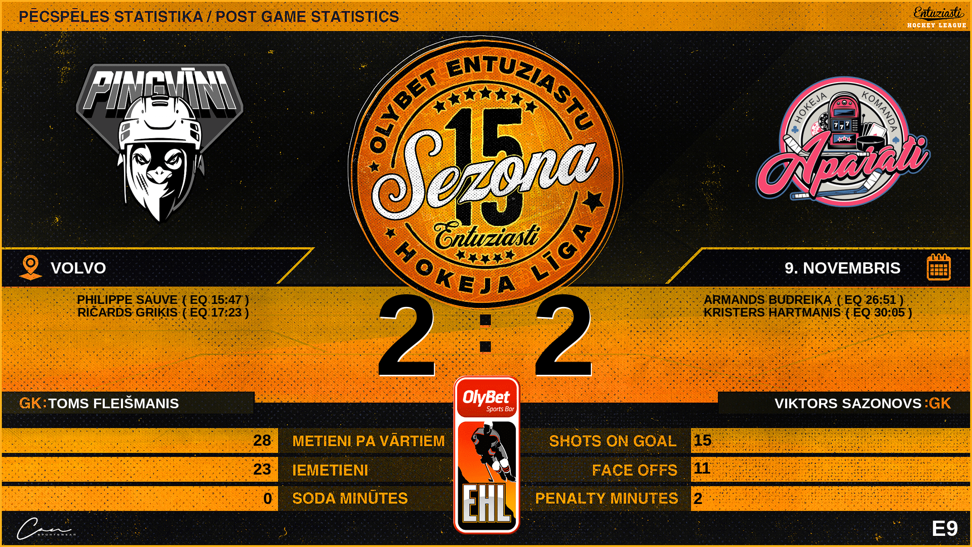 | 17:23 | PIX | Vārti (EQ) | #3 Ričards Griķis |