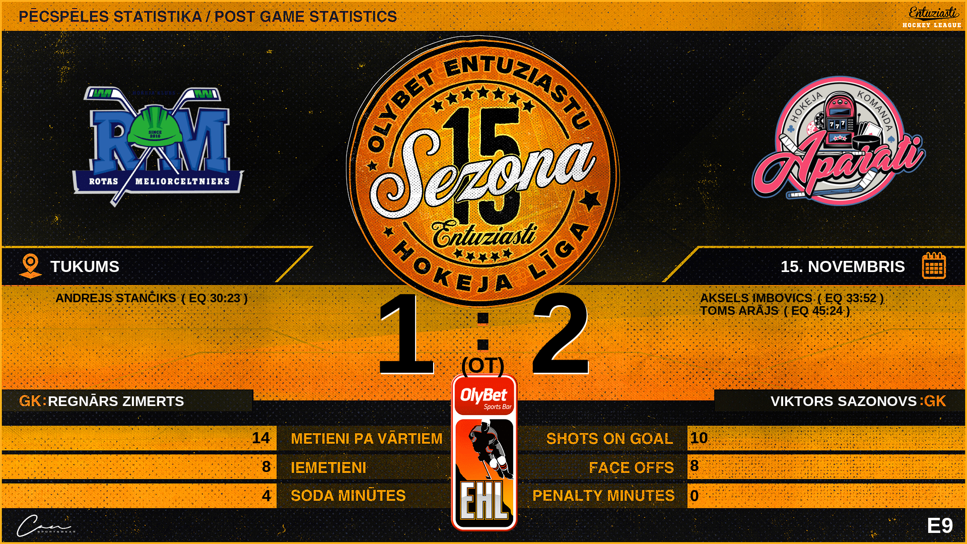 | 45:24 | RT3 | GK Out | #31 Regnārs Zimerts |