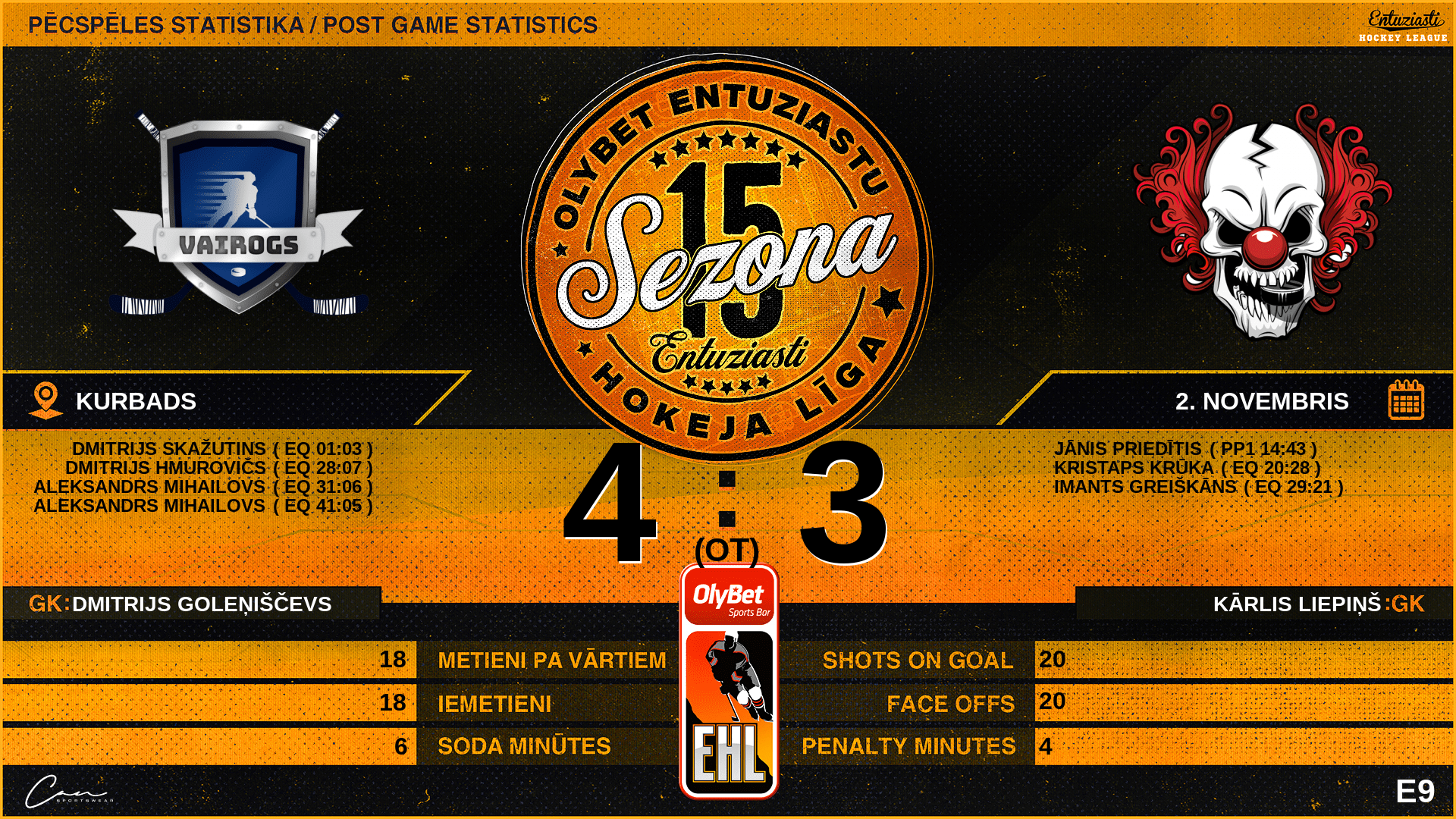 | 28:07 | VG2 | Vārti (EQ) | #5 Dmitrijs Hmurovičs |