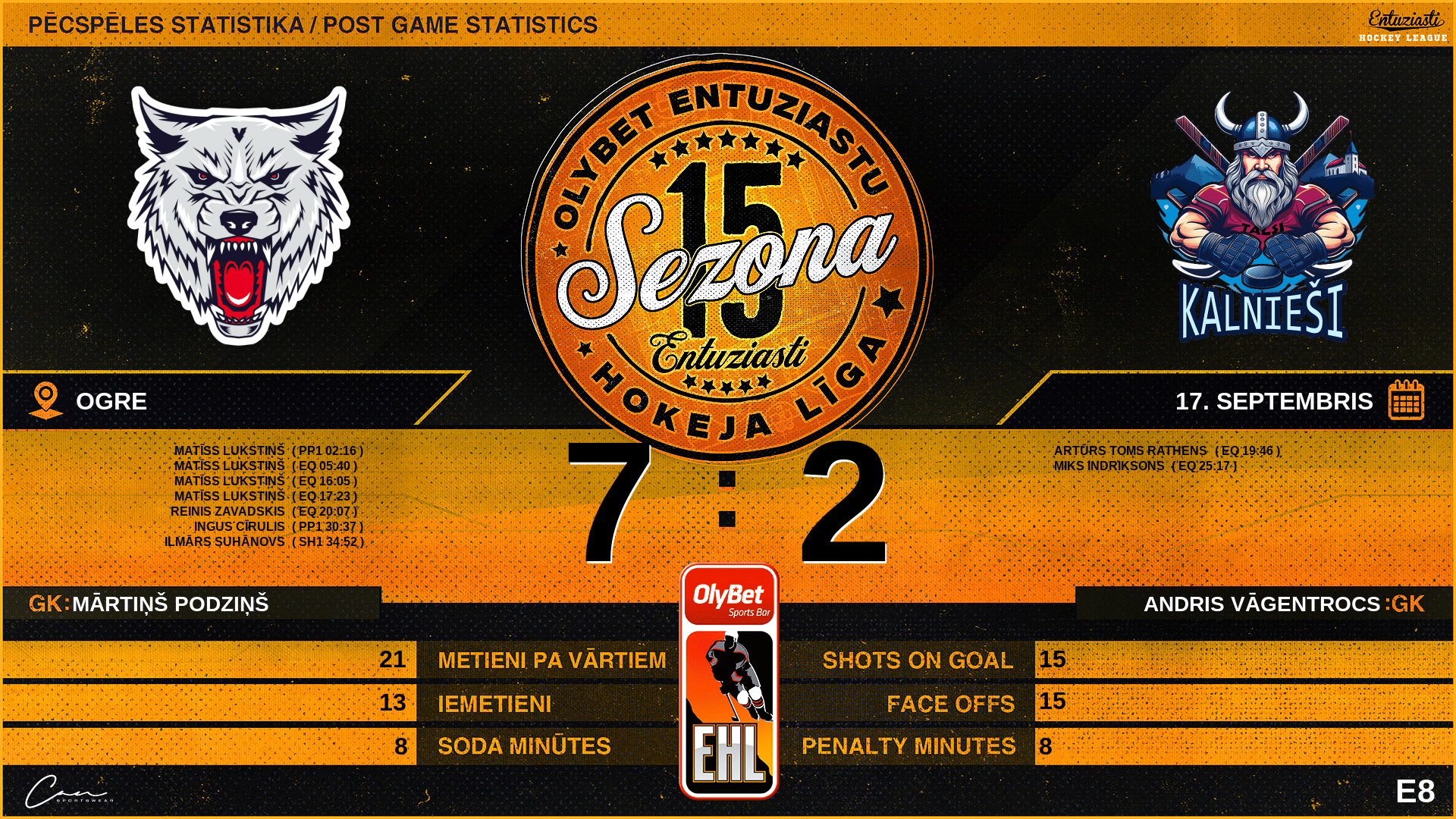 16:05 | VLV | Vārti (EQ) | #14 Matīss Lukstiņš |