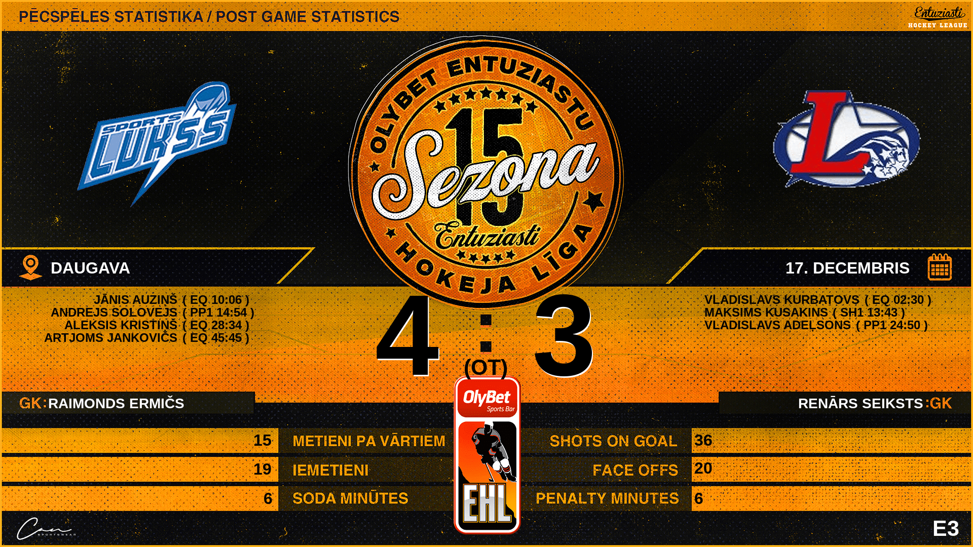 | 28:34 | SP2 | Vārti (EQ) | #41 Aleksis Kristiņš, piespēles: #10 Jānis Auziņš |