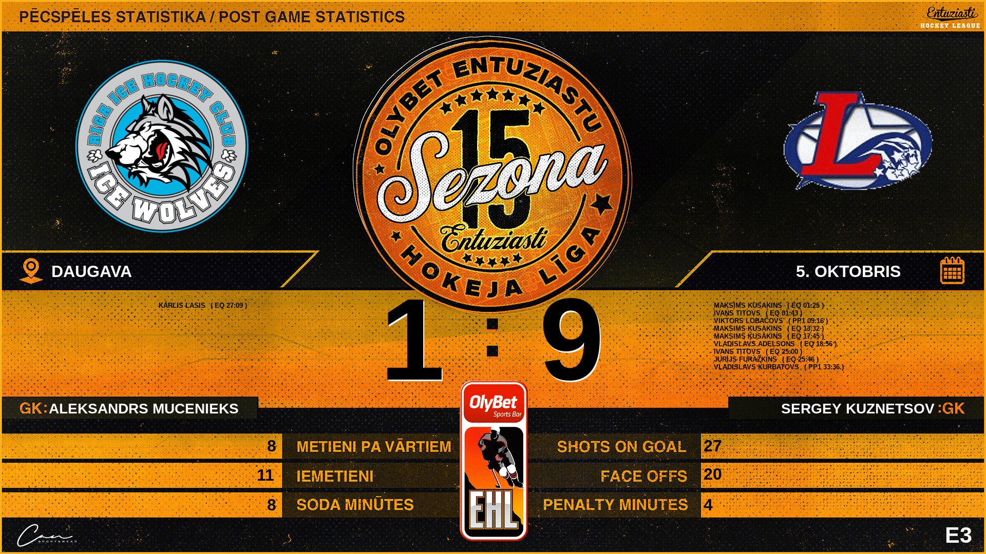 27:09 | WLF | Vārti (EQ) | #7 Kārlis Lasis, piespēles: #19 Reinis Vītoliņš, #74 Tomass Vēvers |