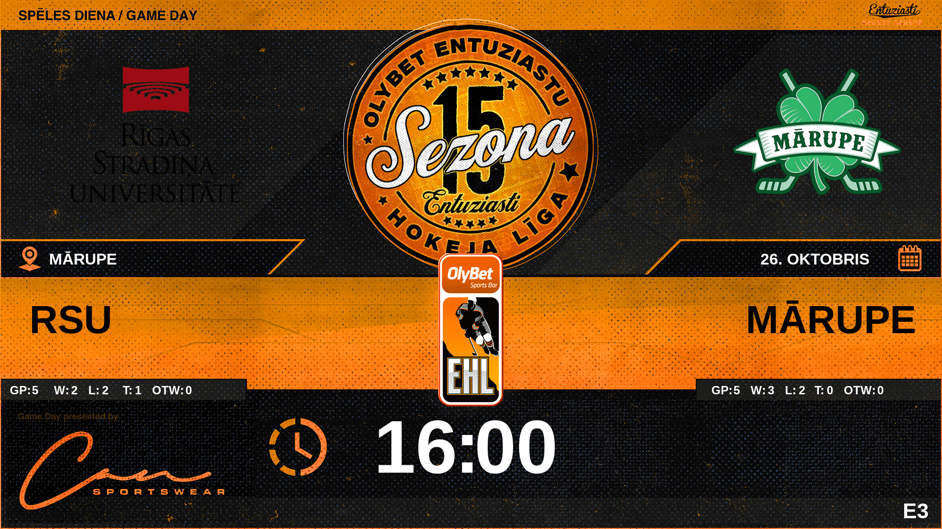 | 00:00 | RSU | GK In | #3 Markuss Brants |