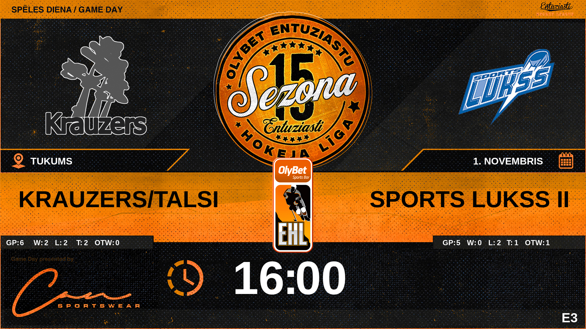 | 00:00 | KRZ | GK In | #1 Gustavs Huhka |