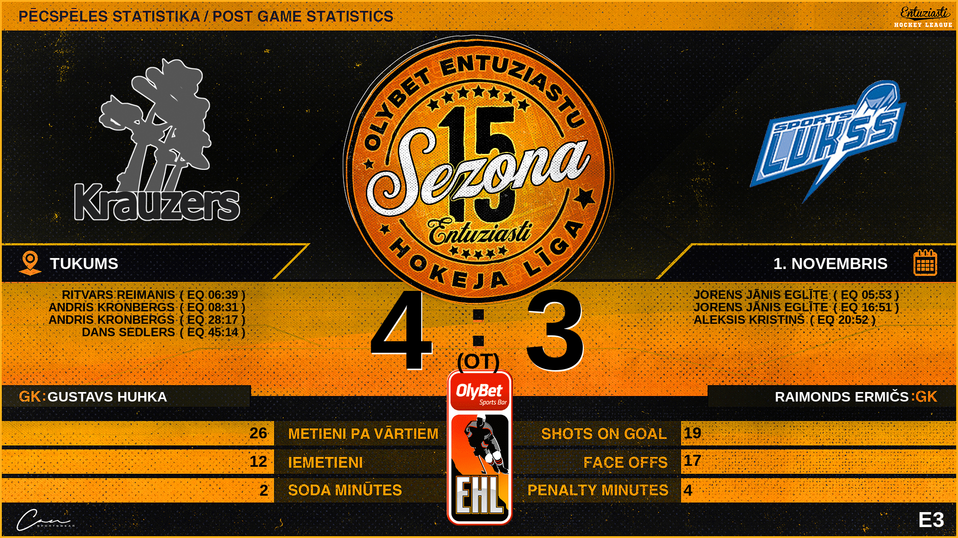 | 28:17 | KRZ | Vārti (EQ) | #76 Andris Kronbergs, piespēles: #17 Jānis Rutkis, #9 Rihards Turiščevs |