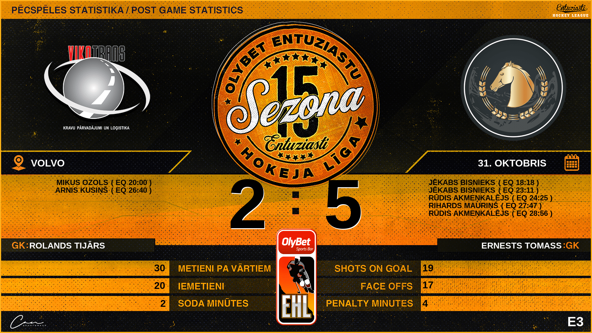 | 36:00 | VKT | GK Out | #31 Rolands Tijārs |
