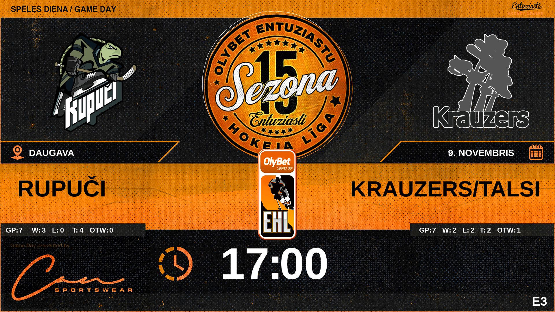 | 00:00 | KRZ | GK In | #1 Gustavs Huhka |