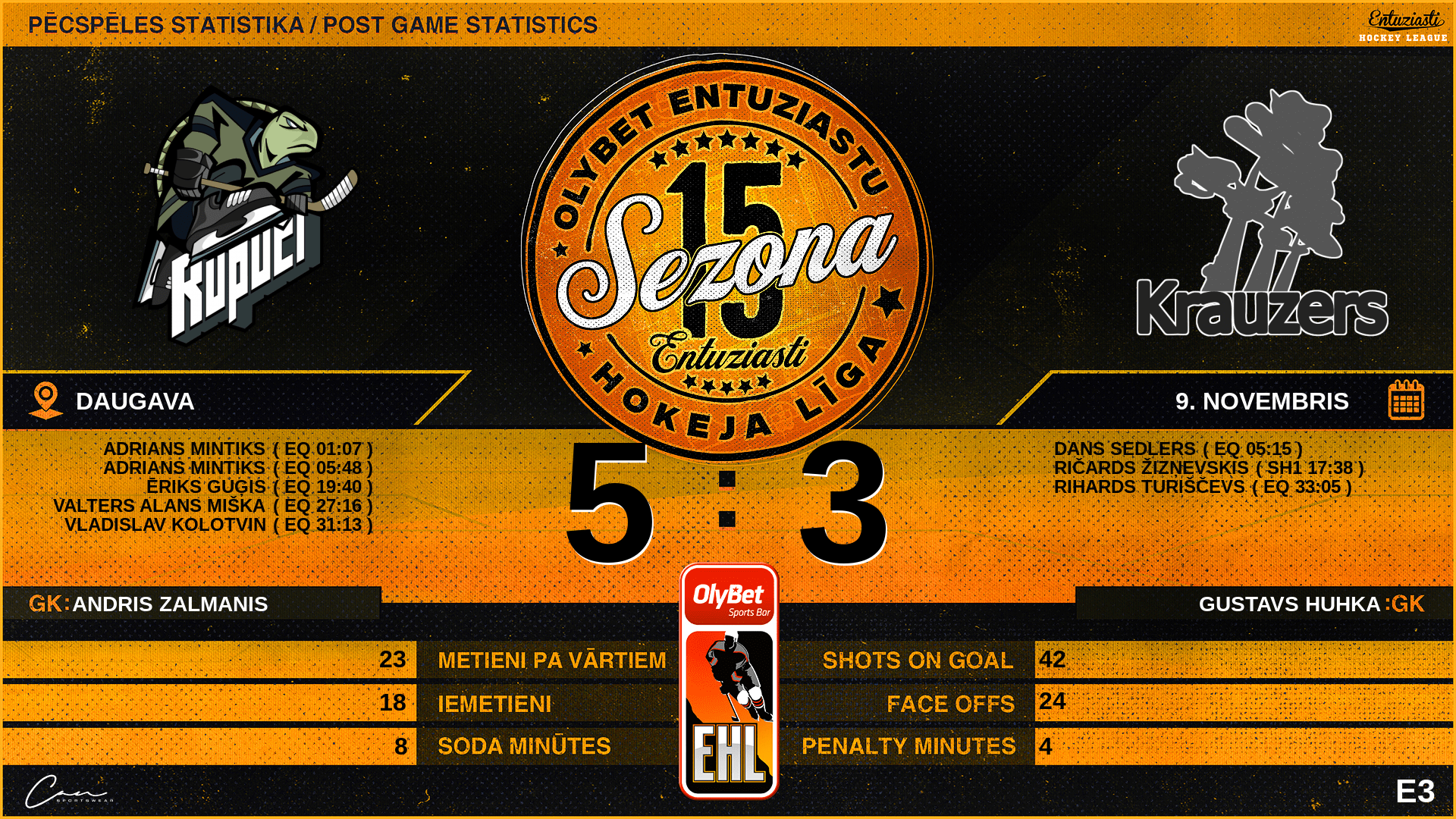 | 36:00 | KRZ | GK Out | #1 Gustavs Huhka |