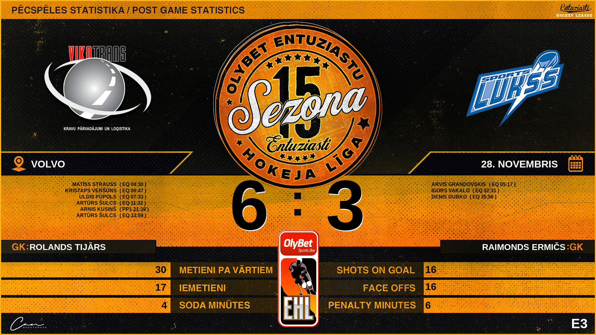 | 36:00 | VKT | GK Out | #31 Rolands Tijārs |