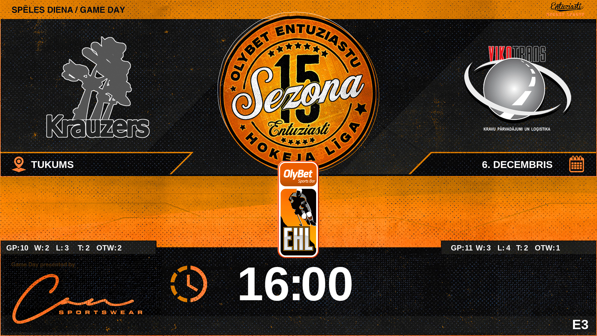 | 00:00 | KRZ | GK In | #1 Gustavs Huhka |