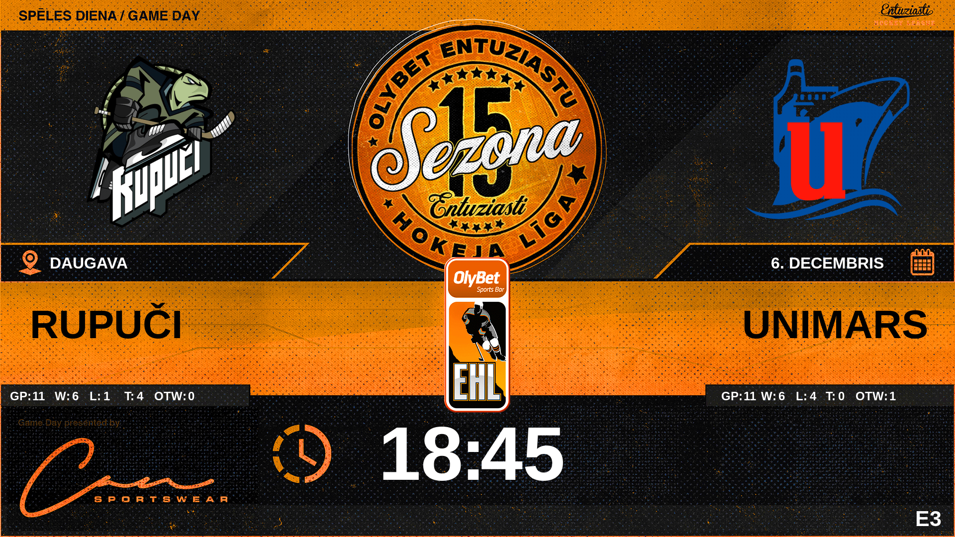 | 15:05 | UNI | Noraidījums | #77 Kārlis Ezers - Cross-checking (2 min) |