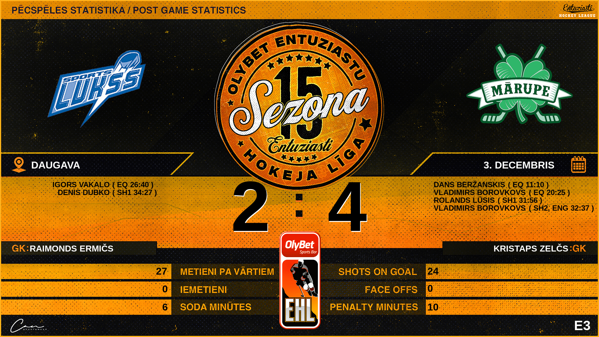 | 32:37 | SP2 | GK In | #20 Raimonds Ermičs |