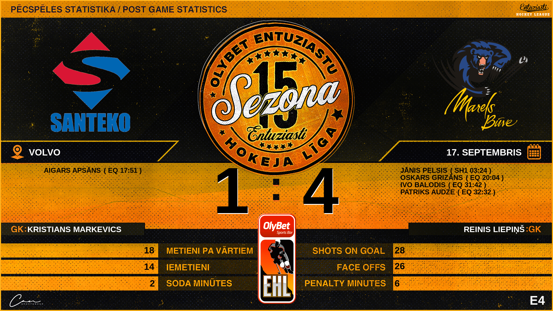 20:04 | MB2 | Vārti (EQ) | #24 Oskars Grizāns, piespēles: #12 Aleksandrs Galkins |