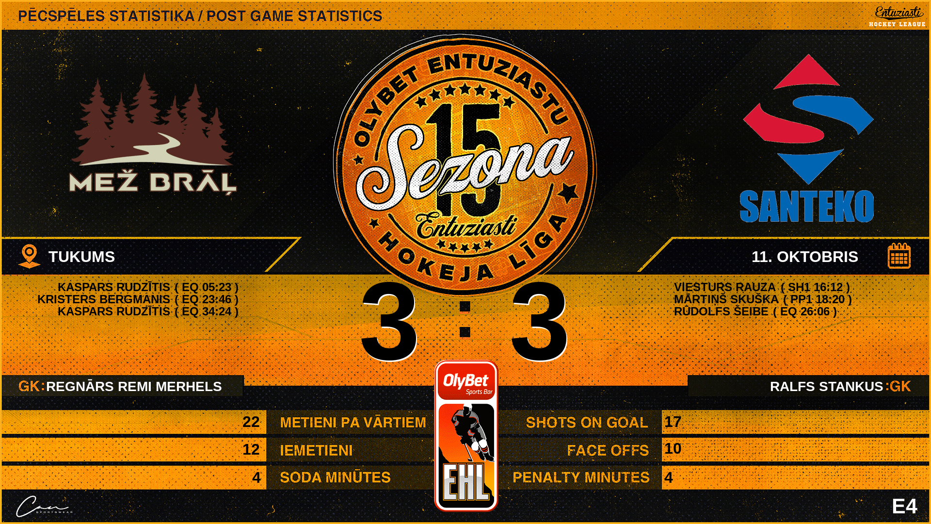 | 34:24 | MZB | Vārti (EQ) | #28 Kaspars Rudzītis, piespēles: #77 Ģirts Ķierpe, #3 Krišs Āls |