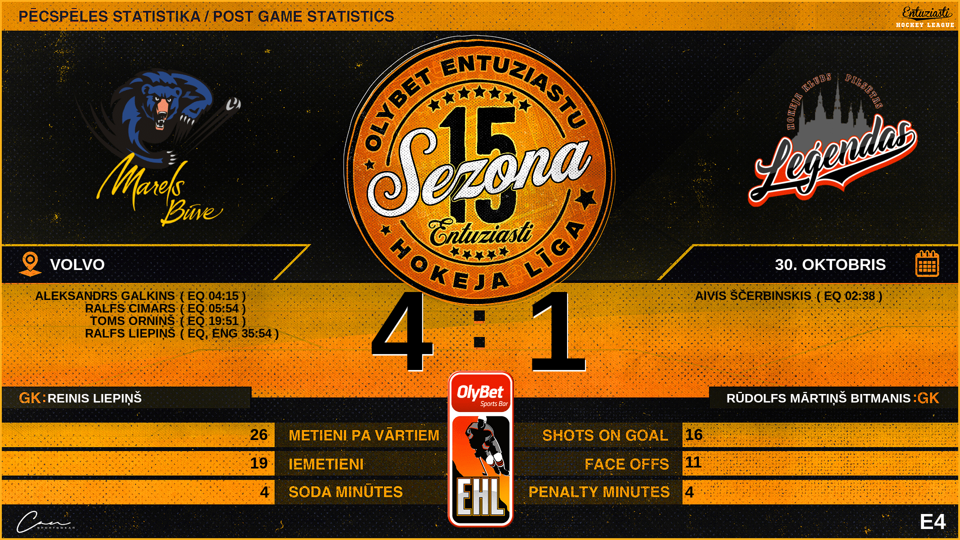 | 35:24 | PLG | GK In | #1 Rūdolfs Mārtiņš Bitmanis |