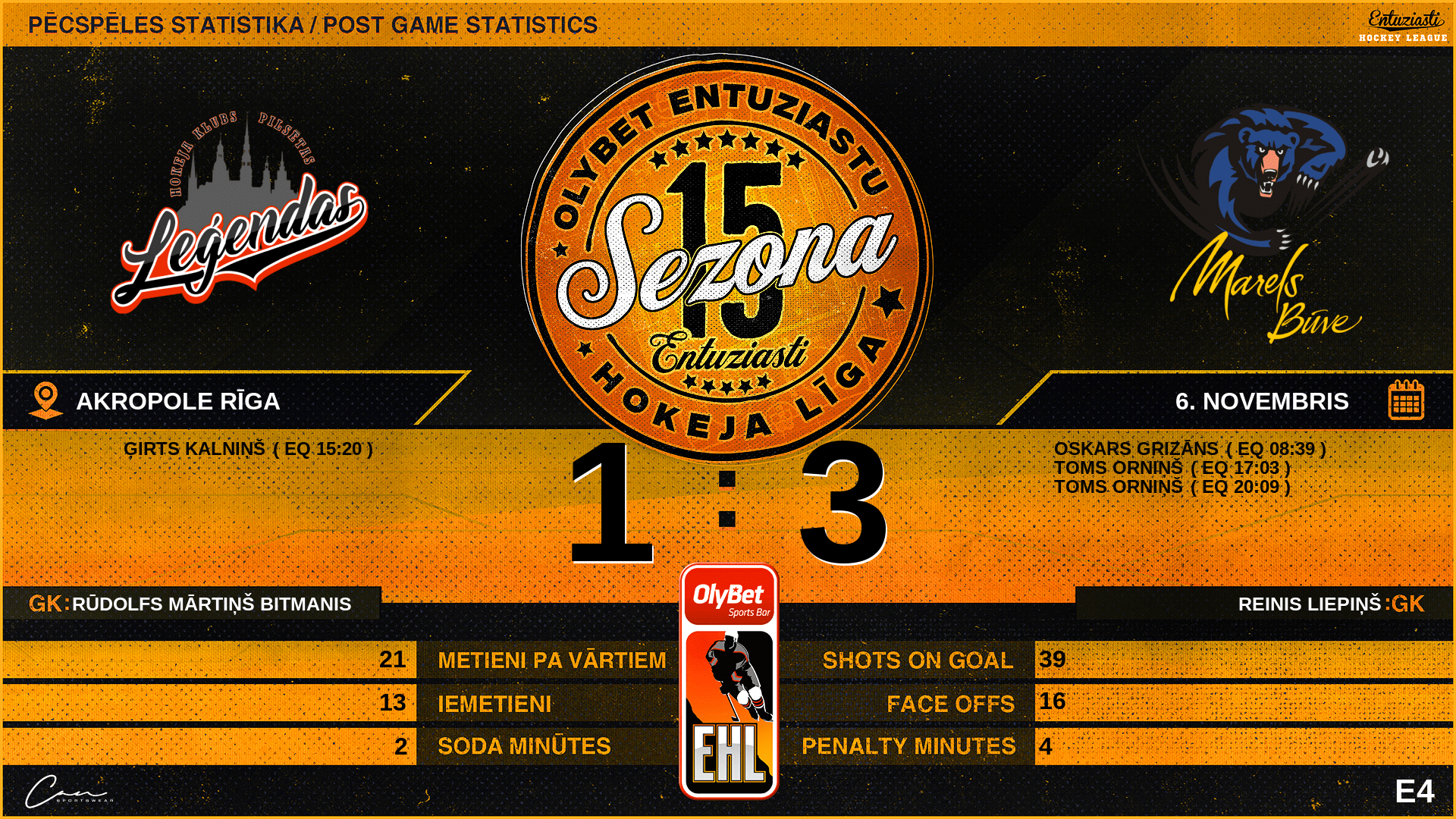 | 36:00 | MB2 | GK Out | #60 Reinis Liepiņš |