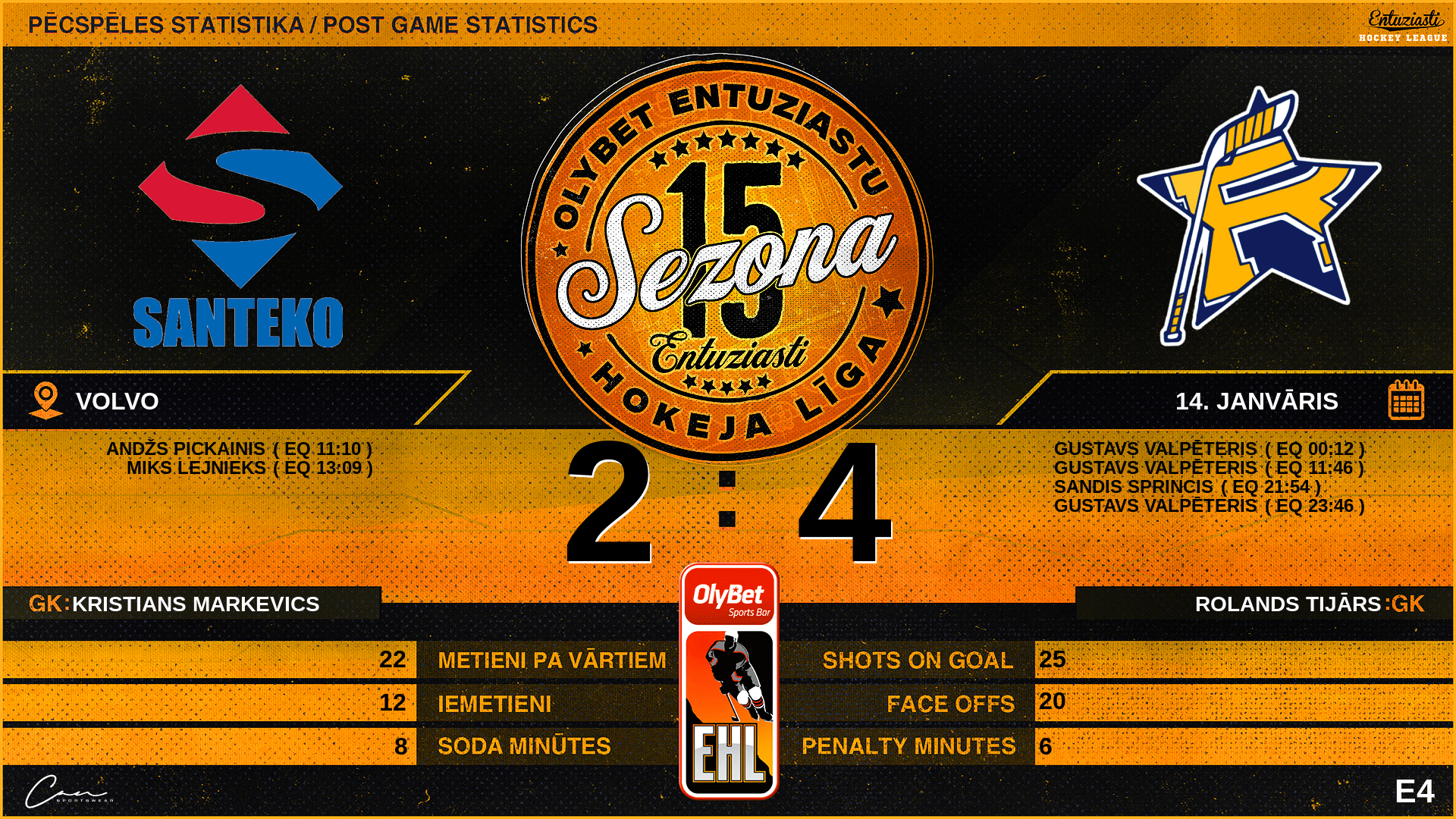 | 00:12 | RP2 | Vārti (EQ) | #44 Gustavs Valpēteris |