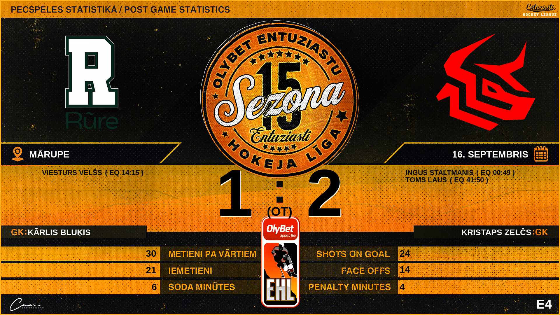 00:49 | TRS | Vārti (EQ) | #21 Ingus Staltmanis, piespēles: #68 Toms Laus, #93 Matīss Gusārs |