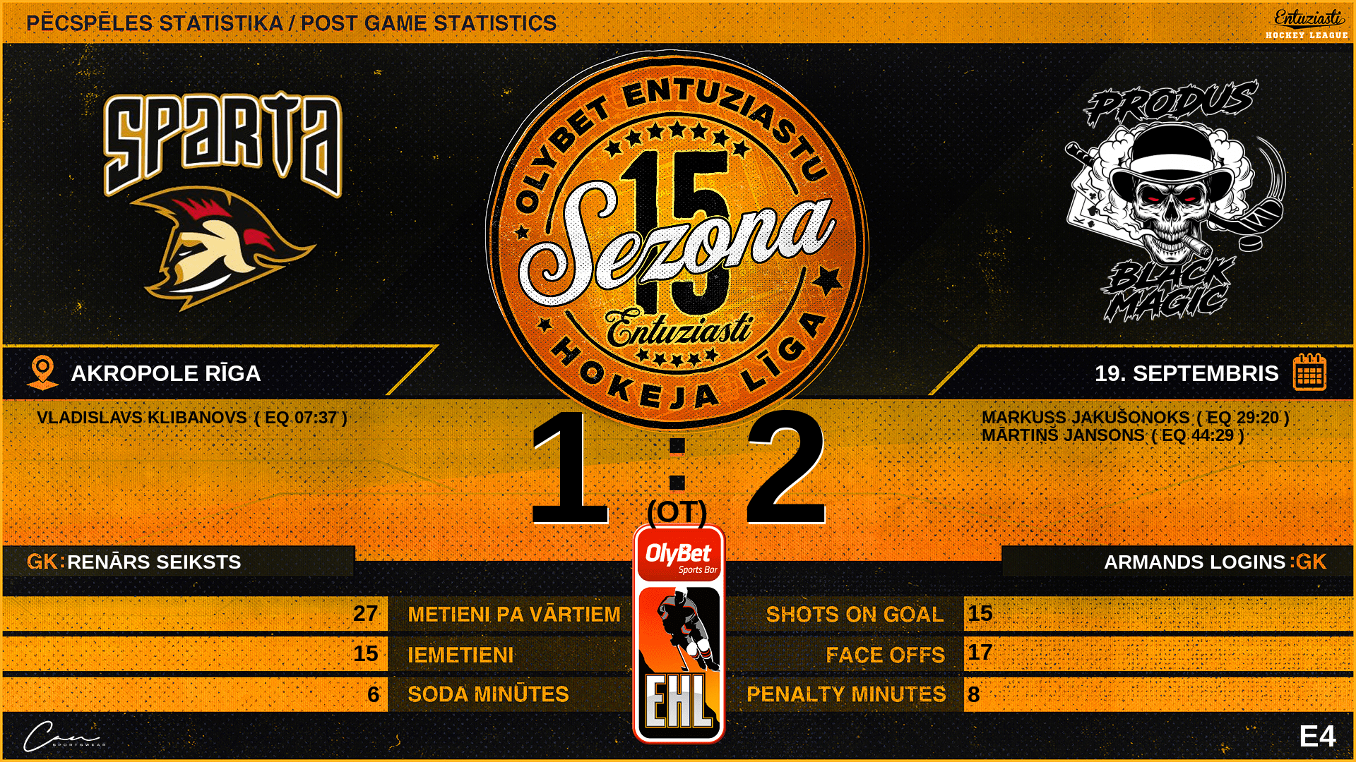 07:37 | SPR | Vārti (EQ) | #8 Vladislavs Klibanovs, piespēles: #18 Mārtiņš Gerke, #71 Edgars Ķuze |