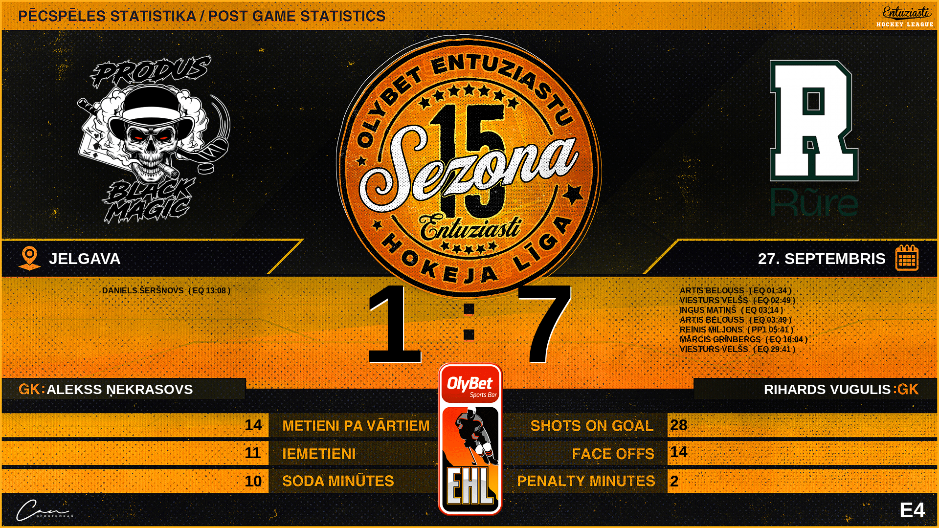 18:04 | RUR | Vārti (EQ) | #86 Mārcis Grīnbergs, piespēles: #93 Gints Vanders |